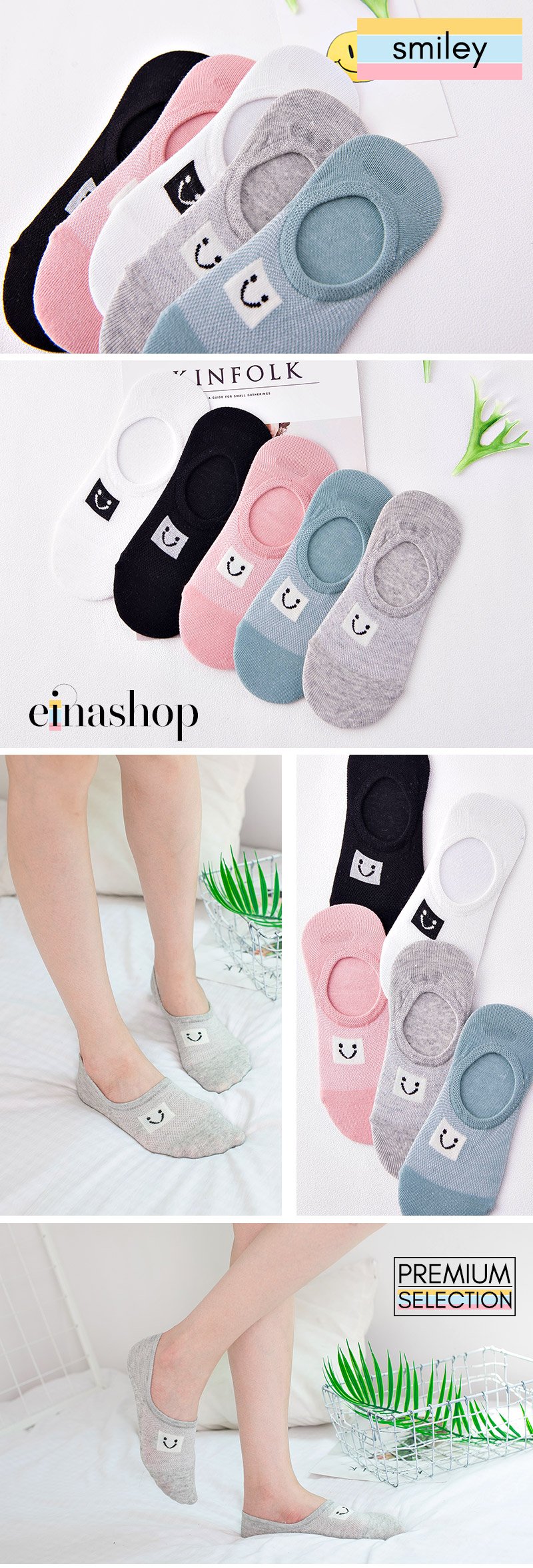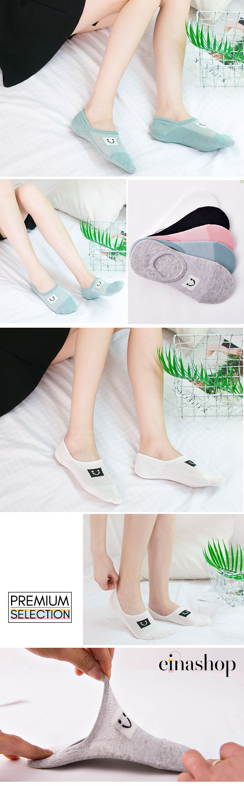 The cotton invisible socks is soft and comfortable. Comes with a cool mesh design that keeps the feet cool and dry for prolonged wearing. Check out the cute smiley logo at the front.