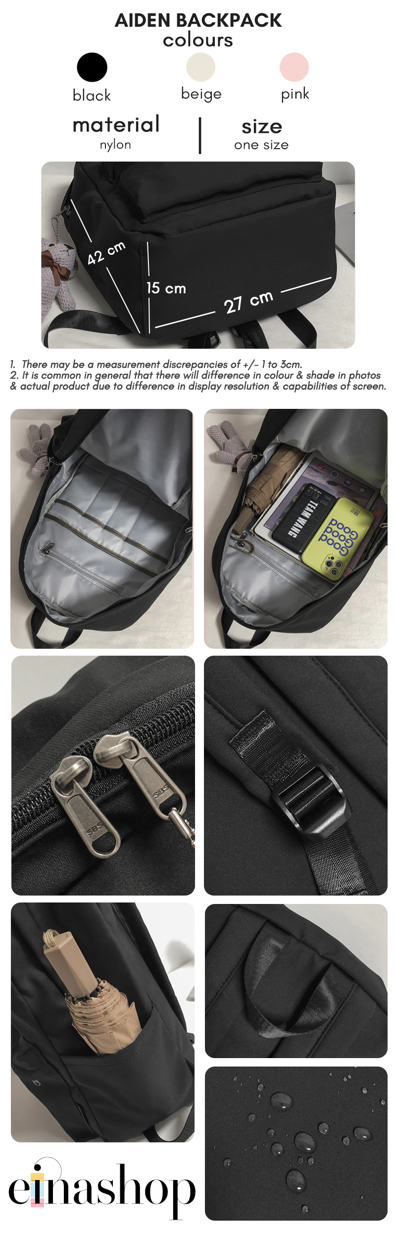 • Made with lightweight water-resistant nylon, this Aiden backpack bag is suitable using as School Backpacks/Casual Backpacks/Travel Backpacks/Business Backpacks/Sports Backpacks.