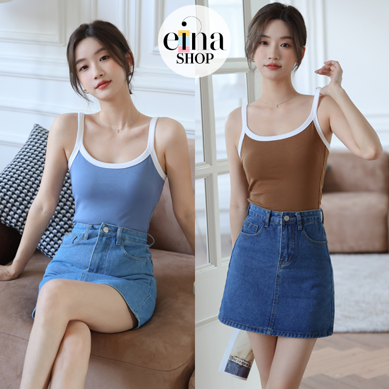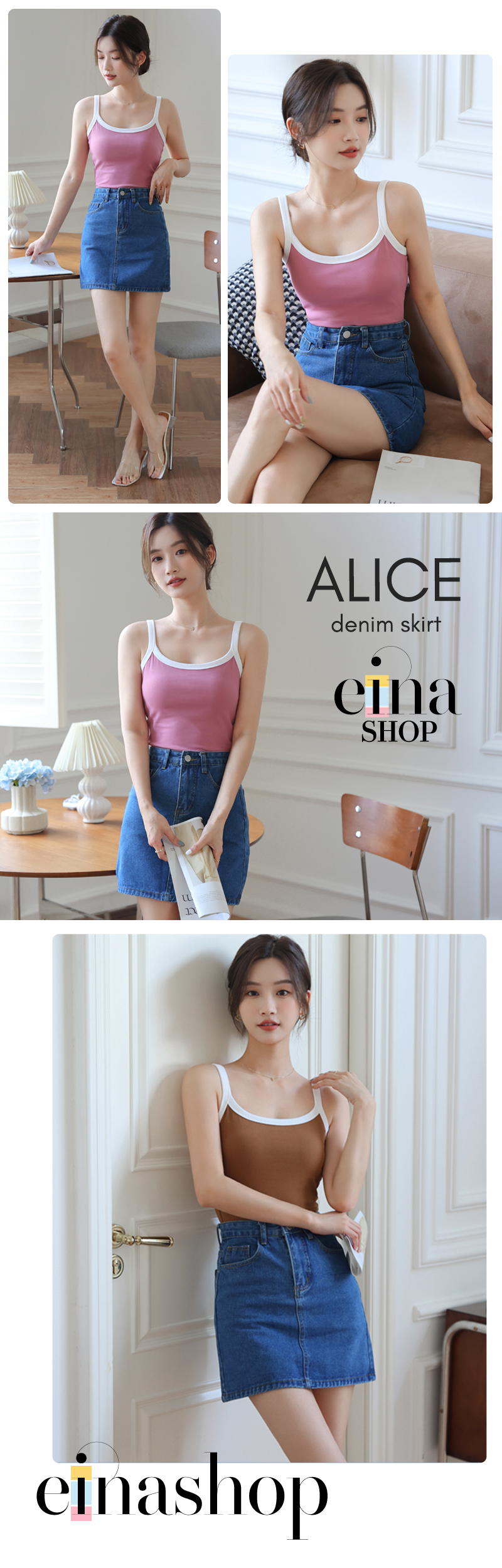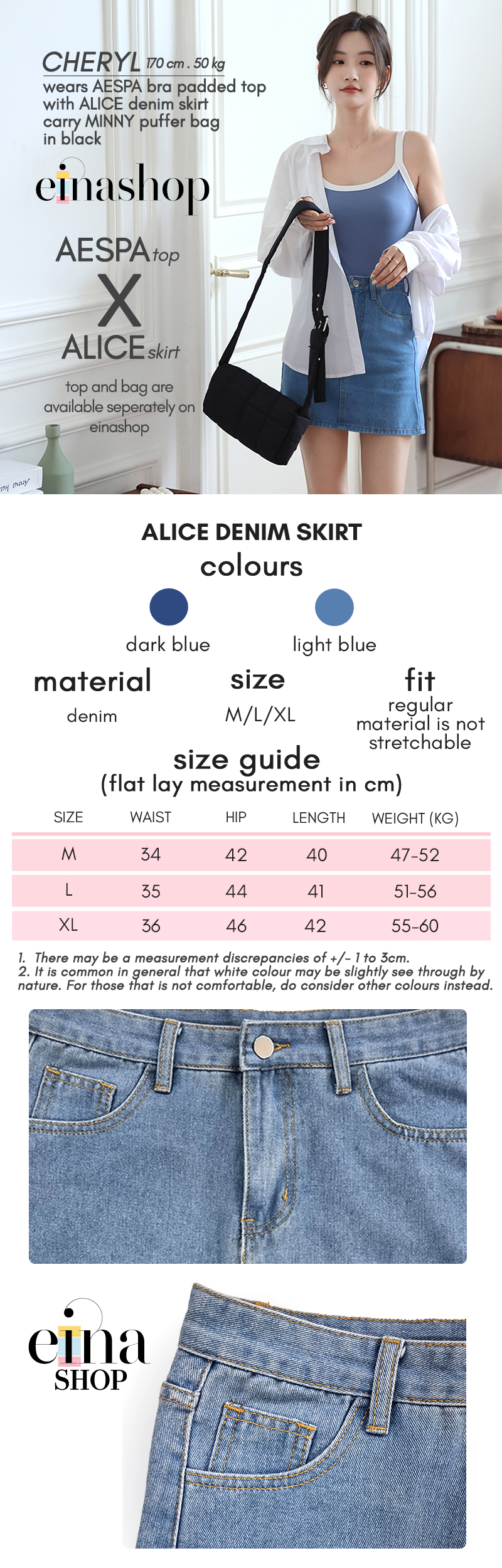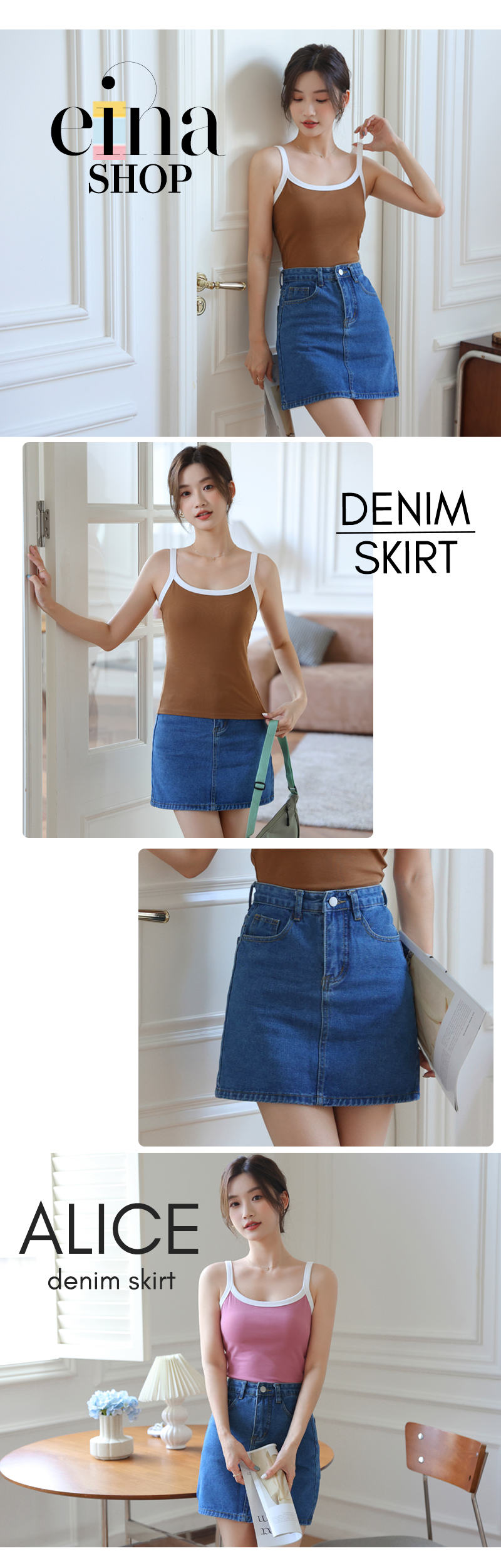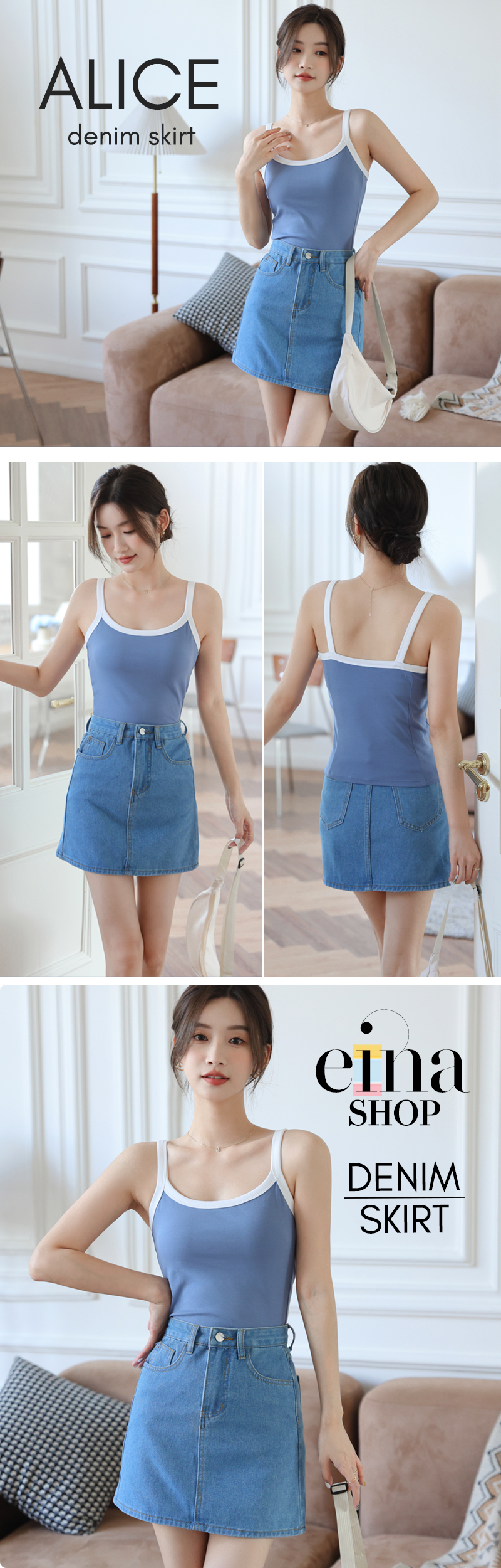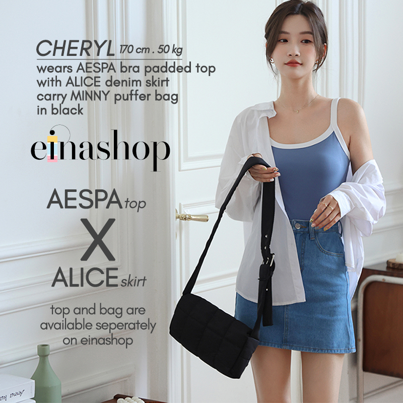 • The Alice denim skirt is worn with AESPA bra padded top.