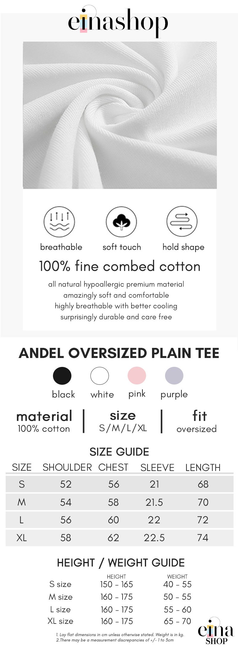 Comes in: S / M / L / XL Height/weight guide: (Note: Guide as a reference only as this is an oversized cut and it all depends on how you will want to wear it)