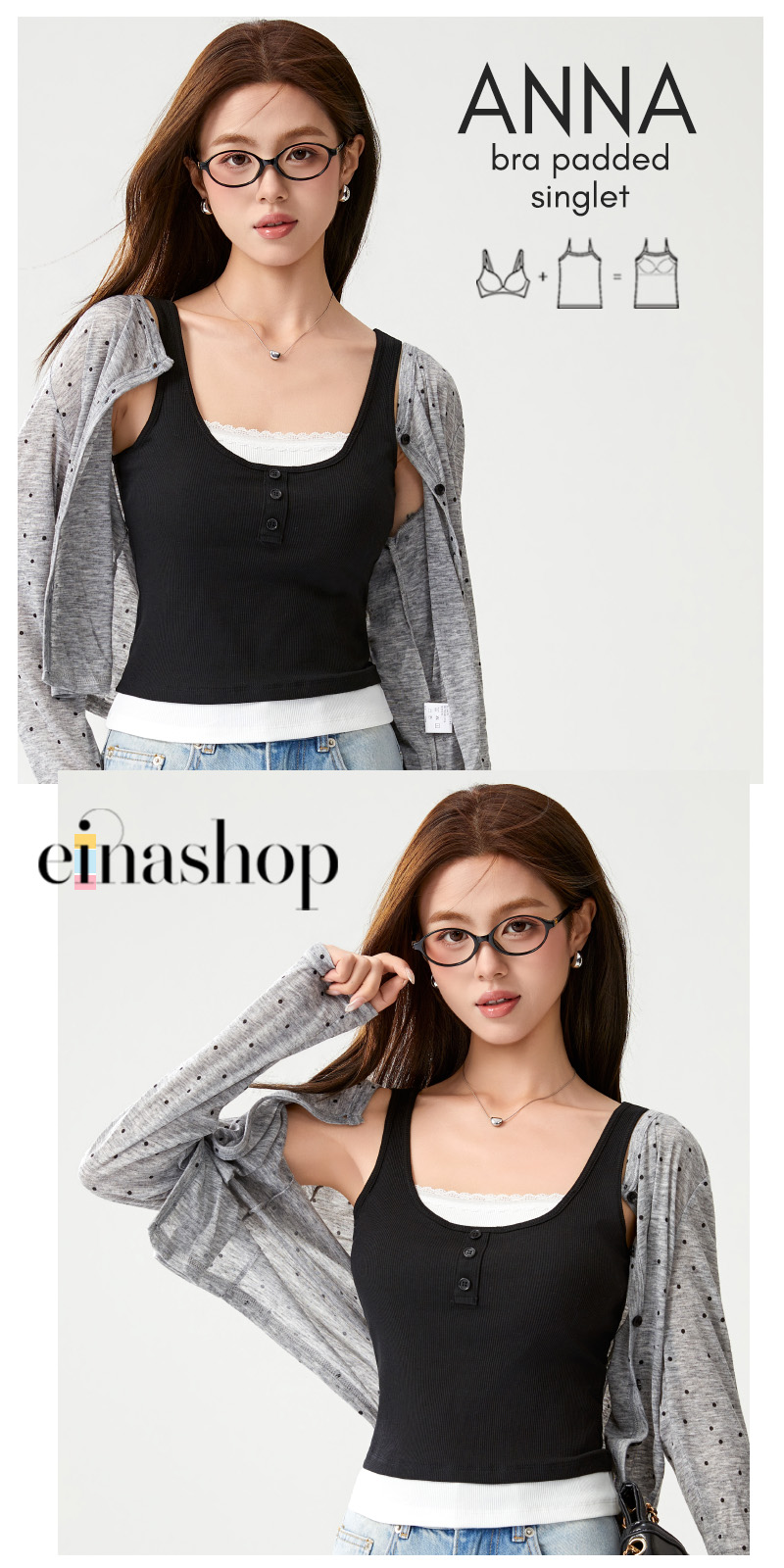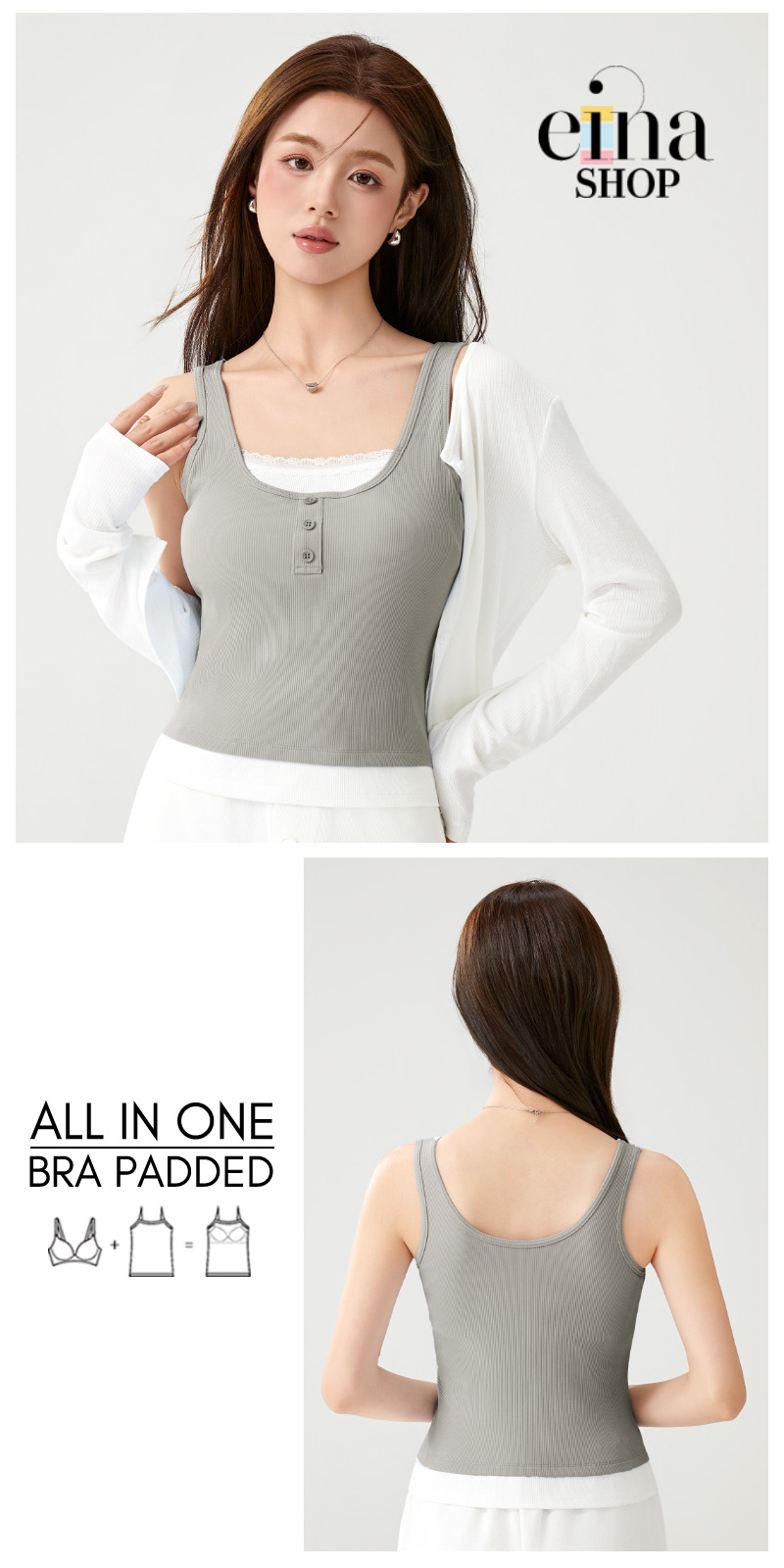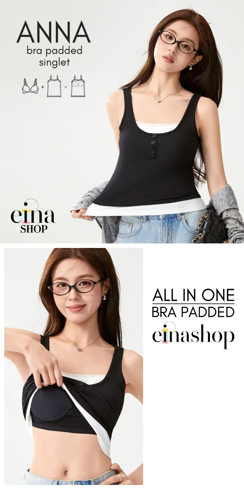 Level up your summer wardrobe with our must-have, versatile bra padded singlet from Einashop!
