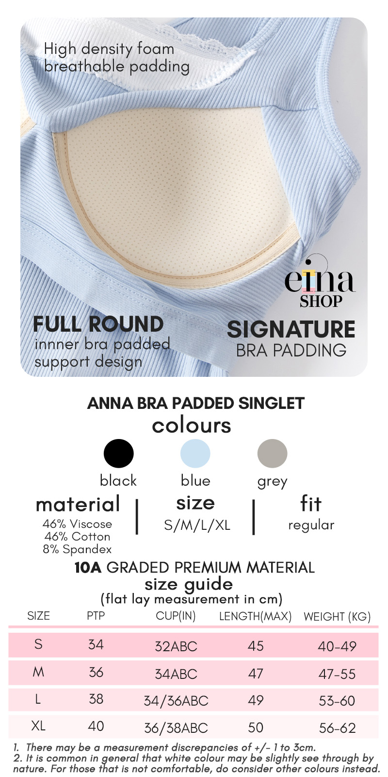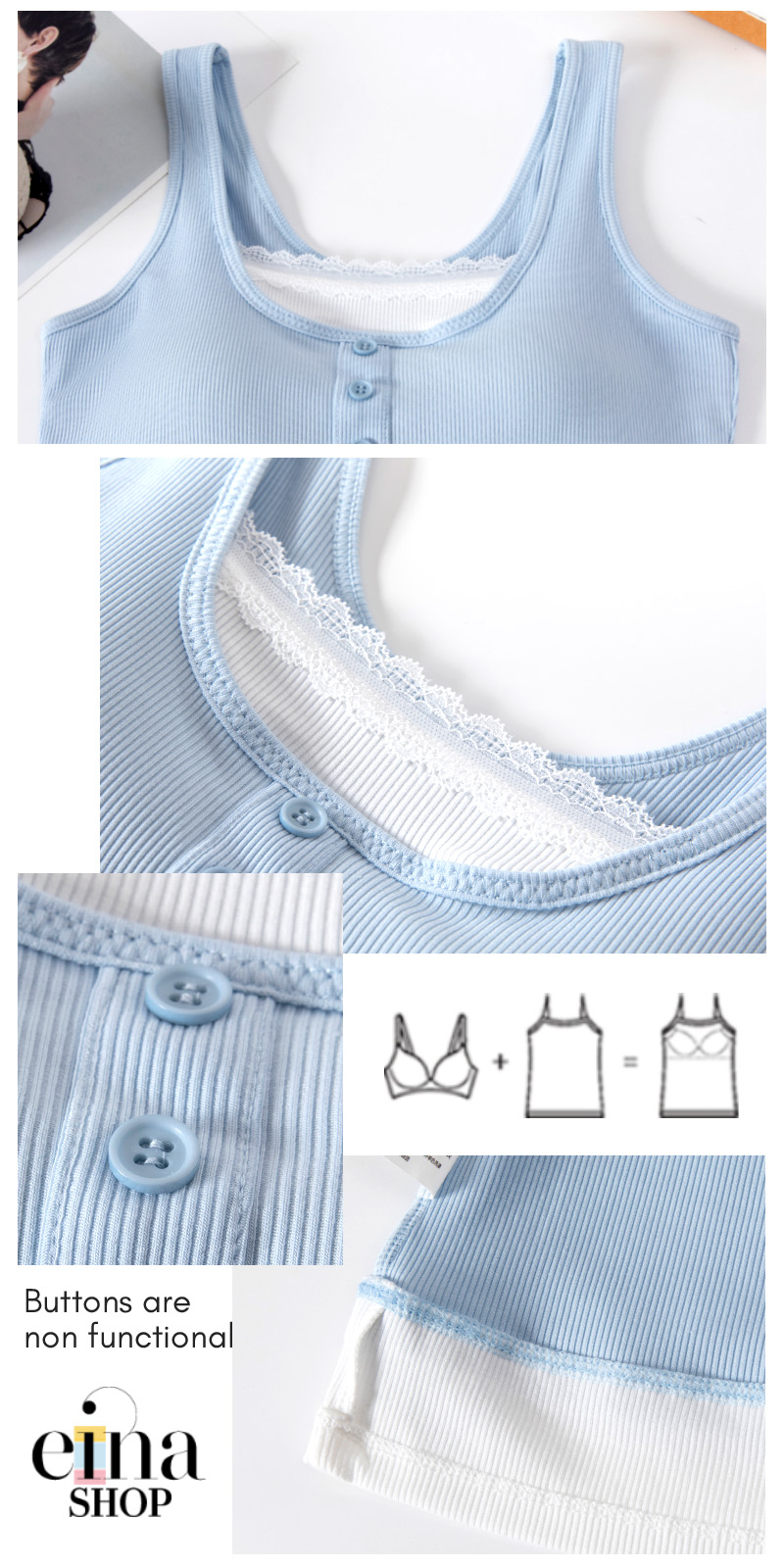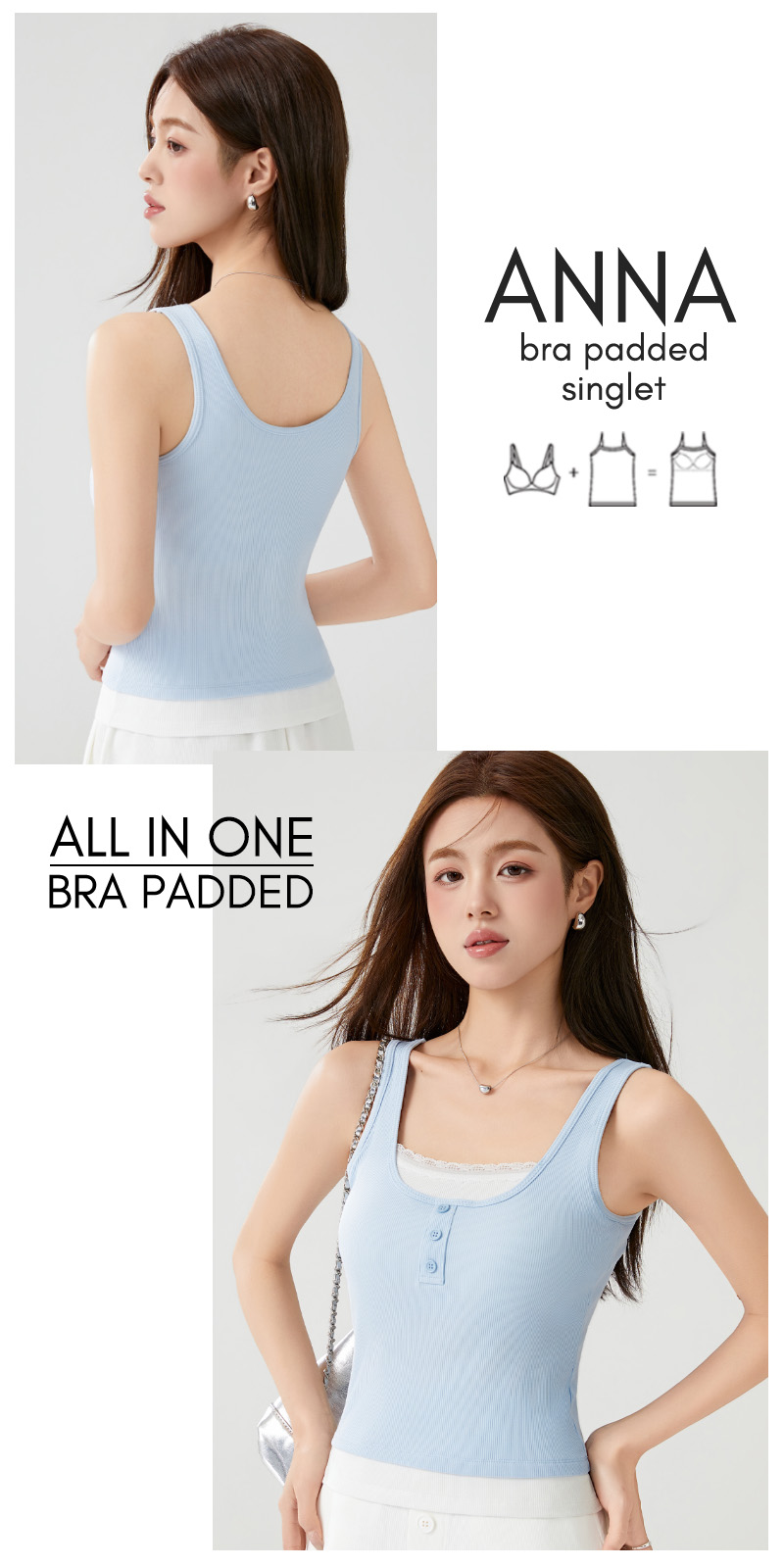 Level up your summer wardrobe with our must-have, versatile bra padded singlet from Einashop!