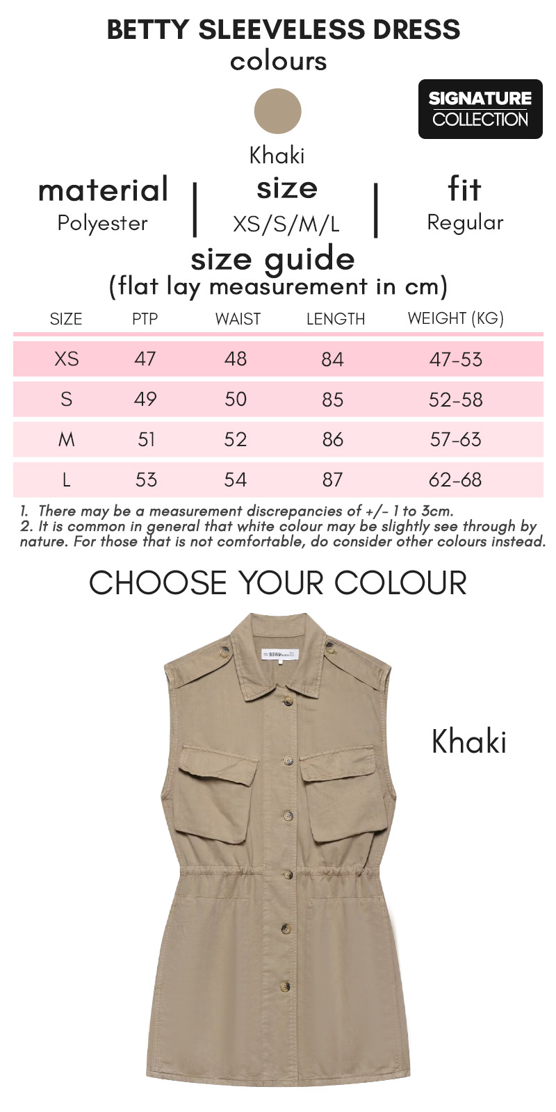• Comes in Khaki. **Bigger arm hole, please wear inner piece or choose another design if not comfortable. The colour might different under different light and camera.**