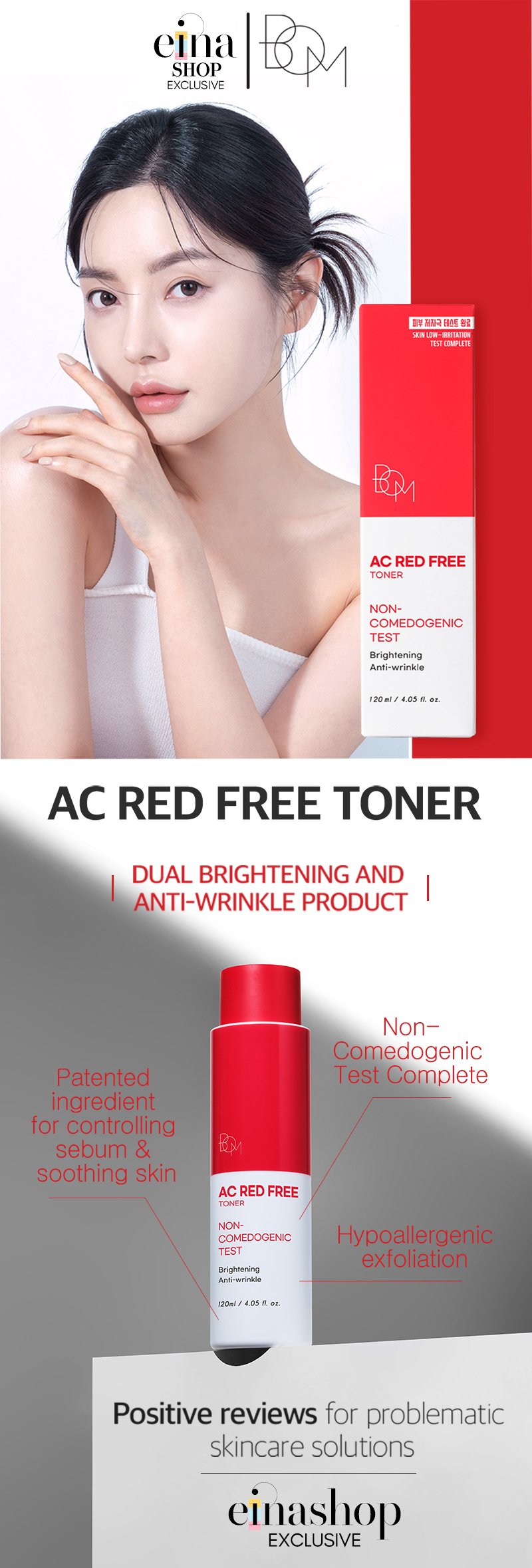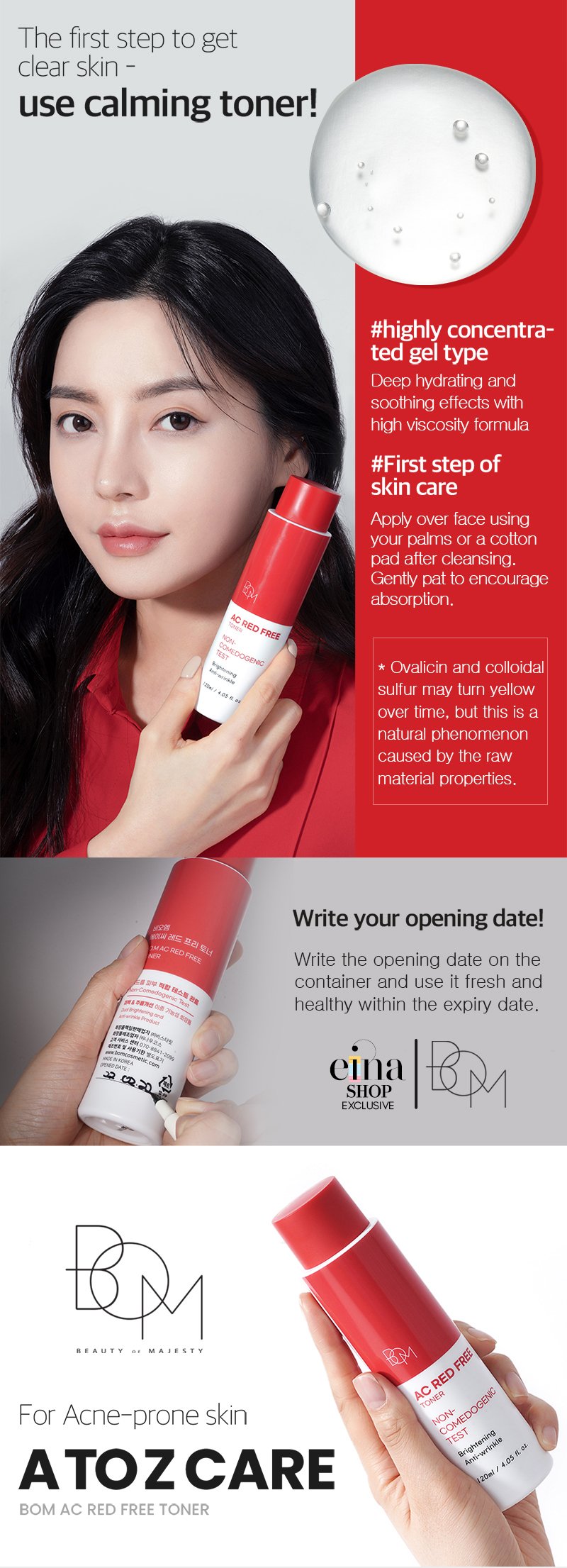 • BOM AC Red Free Toner – Deep hydrating and soothing effects with high viscosity formula