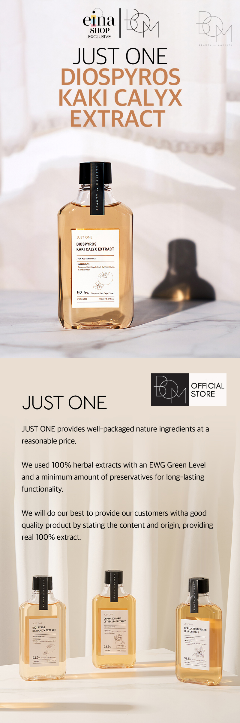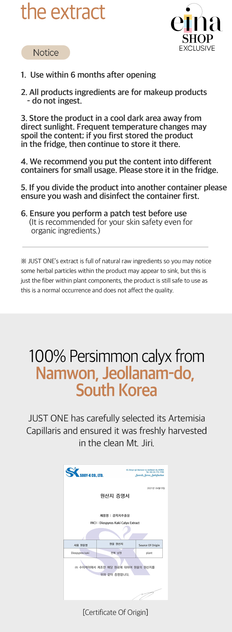 Just One Diospyros Kaki Cakyx Extract – 100% herbal extracts with an EWG Green Level and a minimum amount of preservatives for long-lasting functionality.
