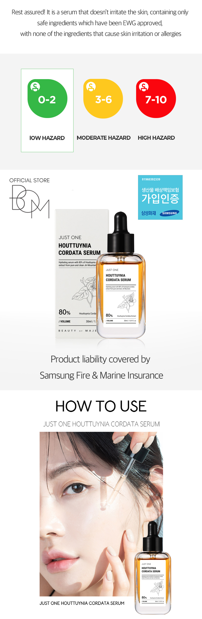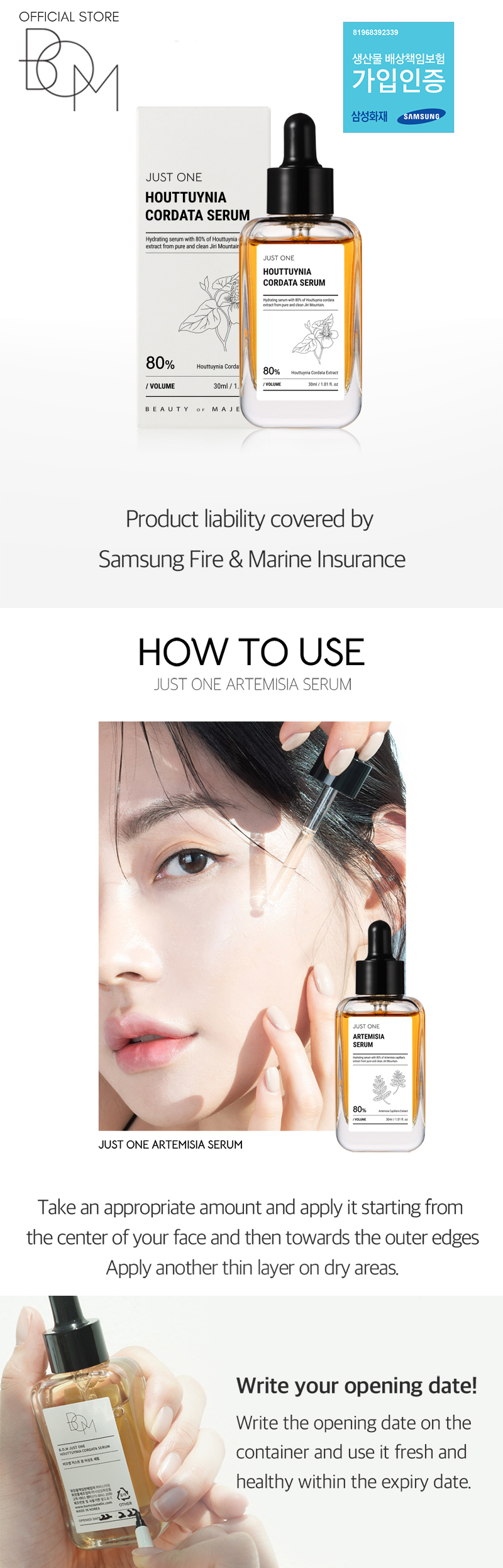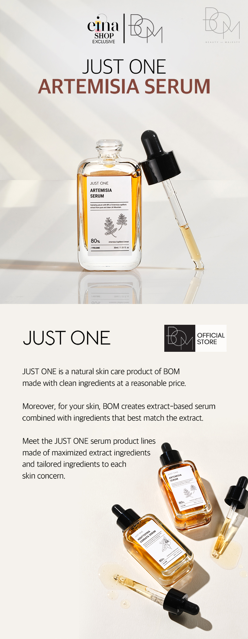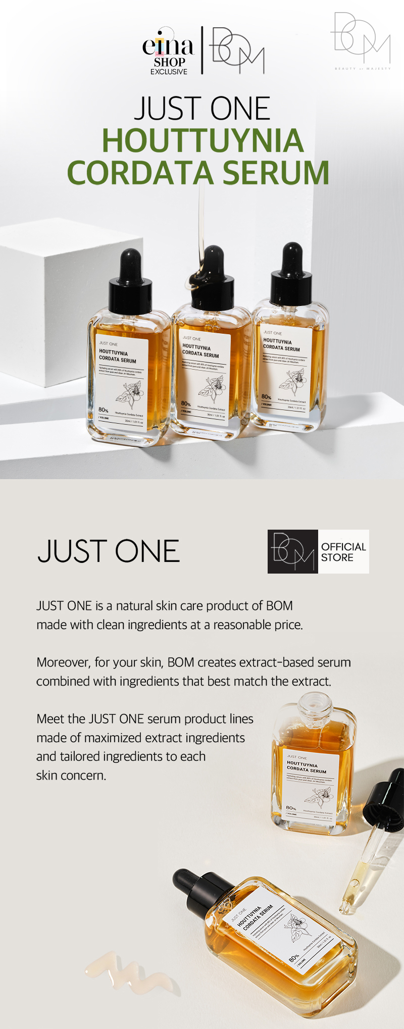 BOM Korea Just One Hydrating Serum with 80% Herbal Extract Skin Care Series.