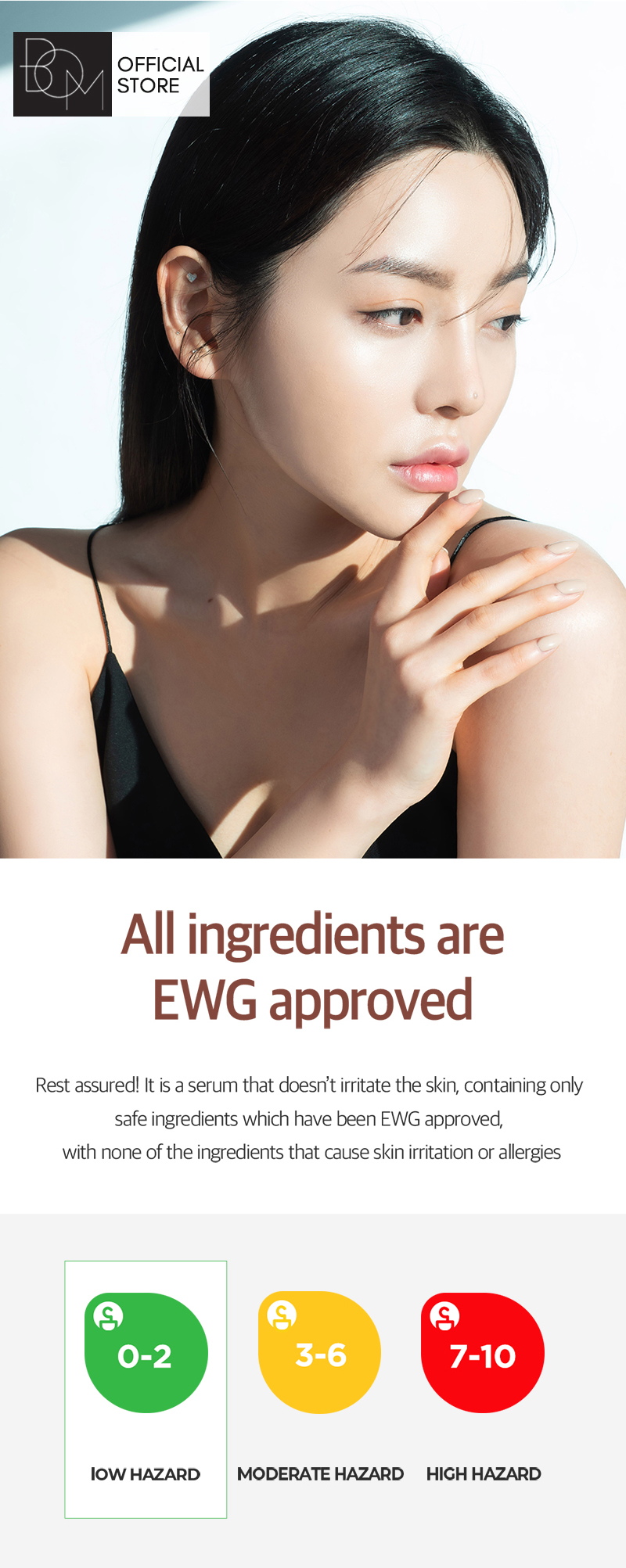 A serum that doesn’t irritate the skin, containing only safe ingredients which have been EWG approved, with none of the ingredients that cause skin irritation or allergies.