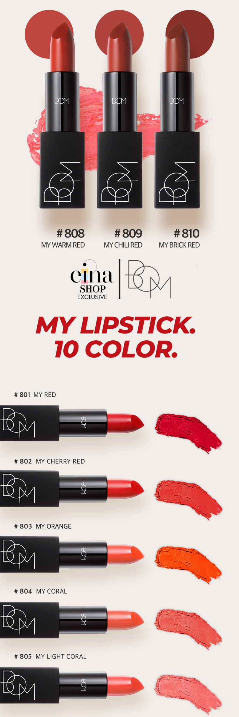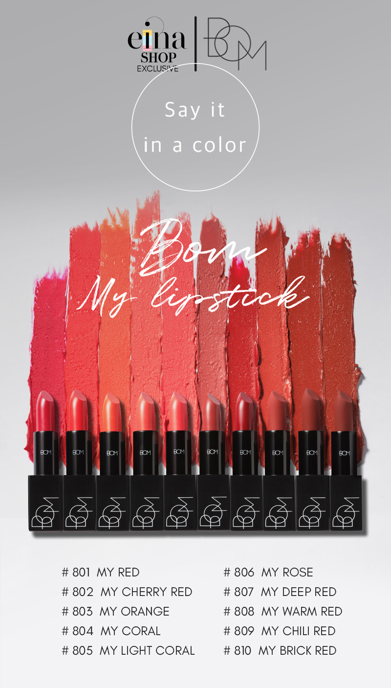 • Available in 10 colours –  801 My Red / 802 My Cherry Red / 803 My Orange / 804 My Coral / 805 My Light Coral / 806 My Rose / 807 My Deep Red / 808 My Warm Red / 809 My Chilli Red / 810 My Brick Red.