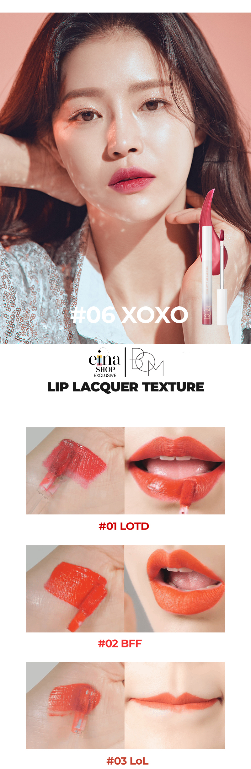 Available in 6 colours – 01 LOTD / 02 BFF / 03 LoL / 04 TMI / 05 F4F / 06 XOXO