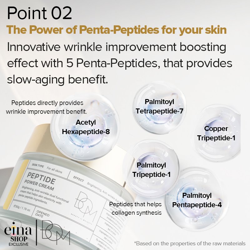 BOM Korea Peptide Power Cream for slow aging and moisturizing.