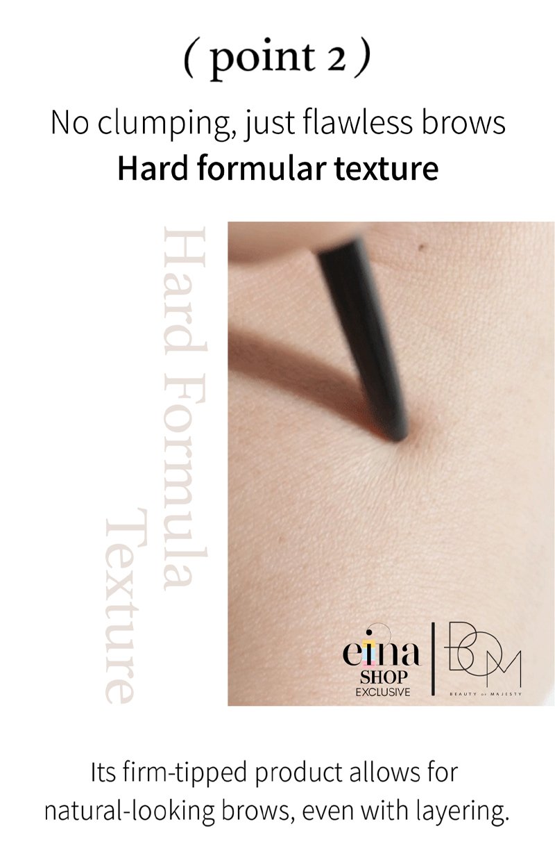 • 2. Hard formular texture – No clumping, just flawless brows. Its firm-tipped product allows for natural-looking brows, even with layering.