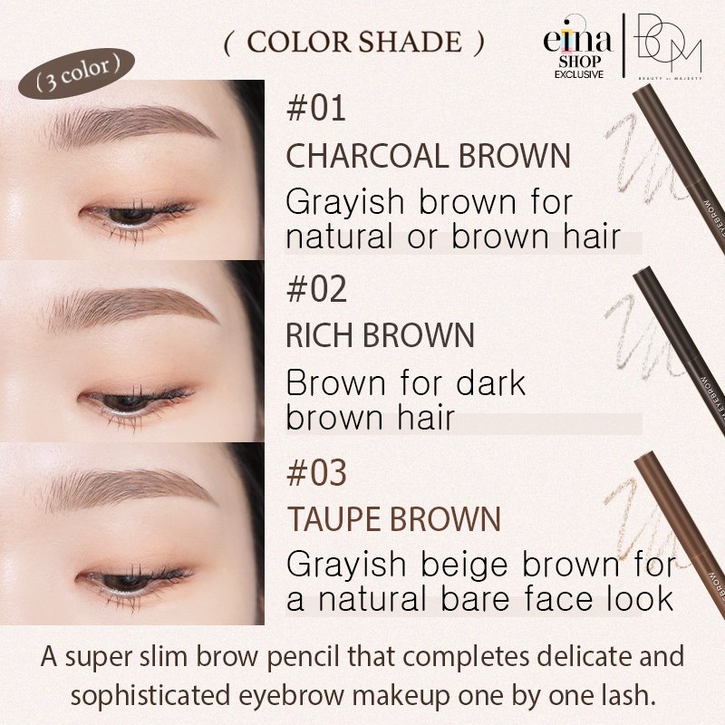 • BOM Super Slim Eyebrow create natural and dedicate eyebrow. A super slim brow pencil that completes delicate and sophisticated eyebrow makeup one by one lash.