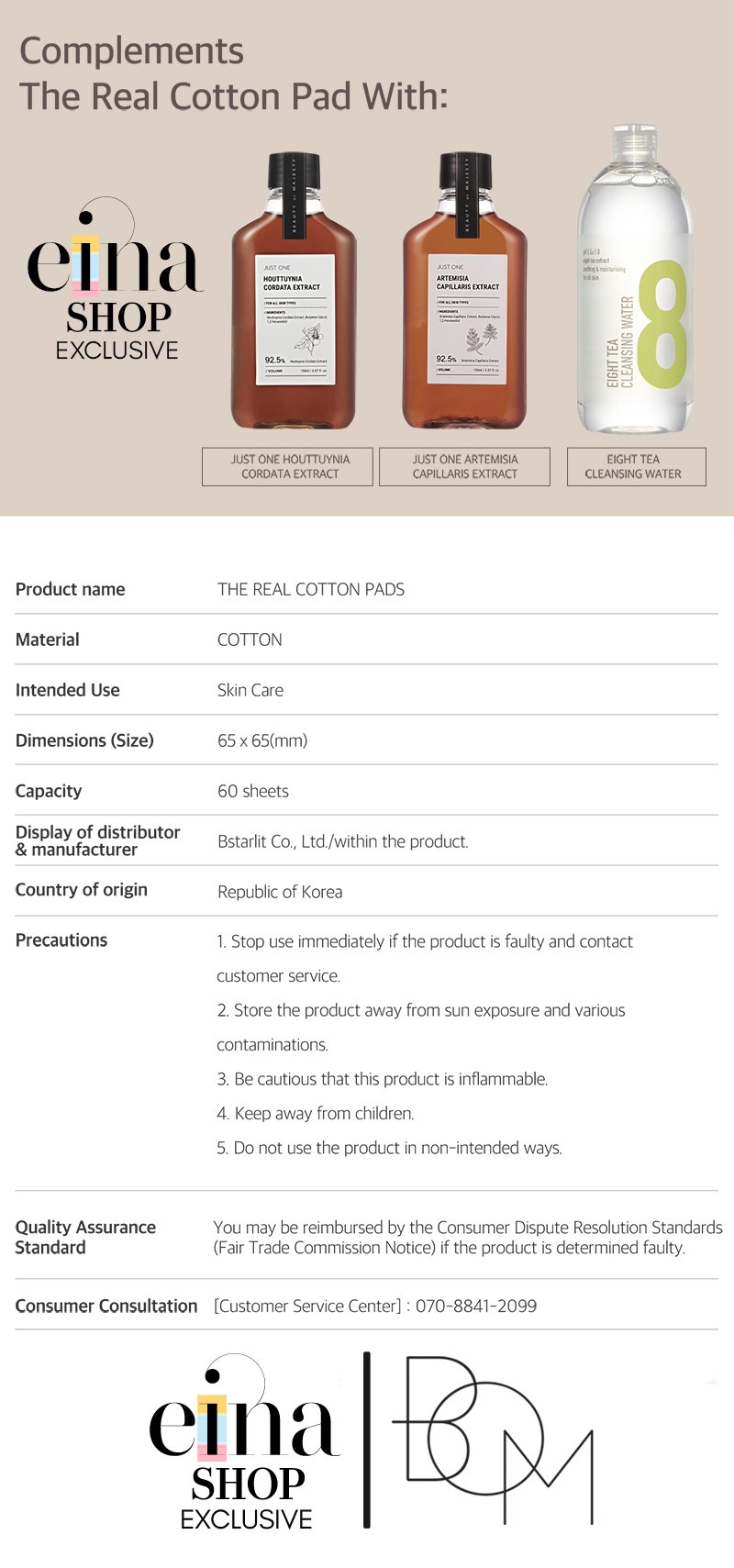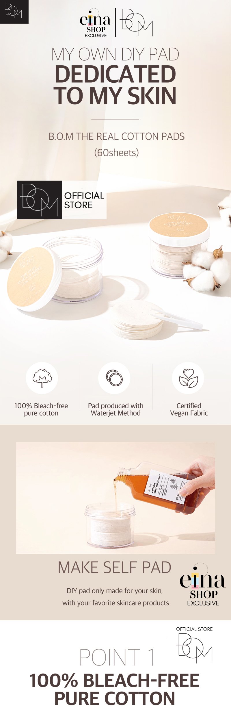 BOM Korea The Real Cotton Pads. Comes in 60 sheets with tweezer.