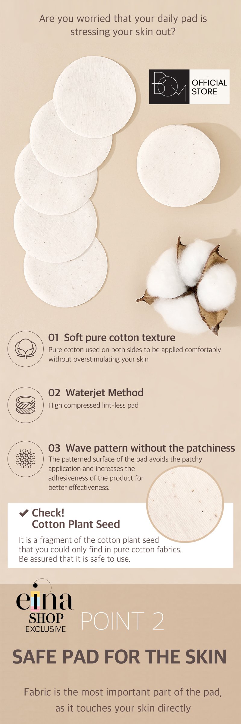 100% bleach free pure cotton – Pure cotton used on both sides to be applied comfortably without overstimulating your skin