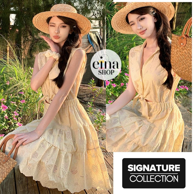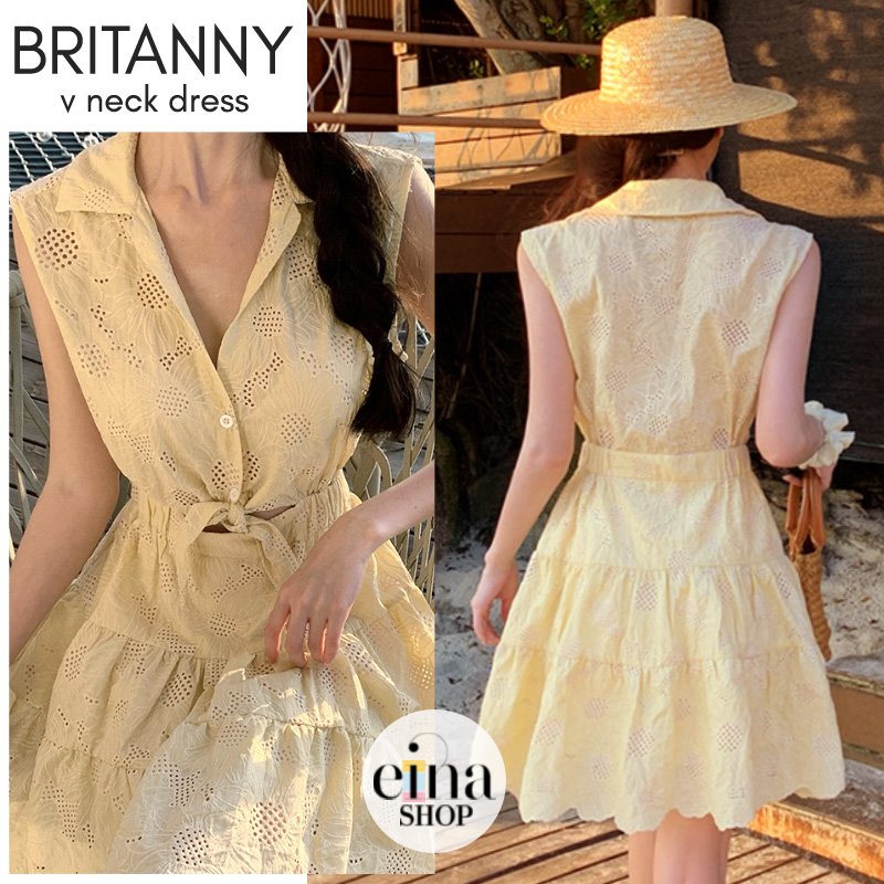 Britanny V Neck Floral Hollow Dress Signature Collection
