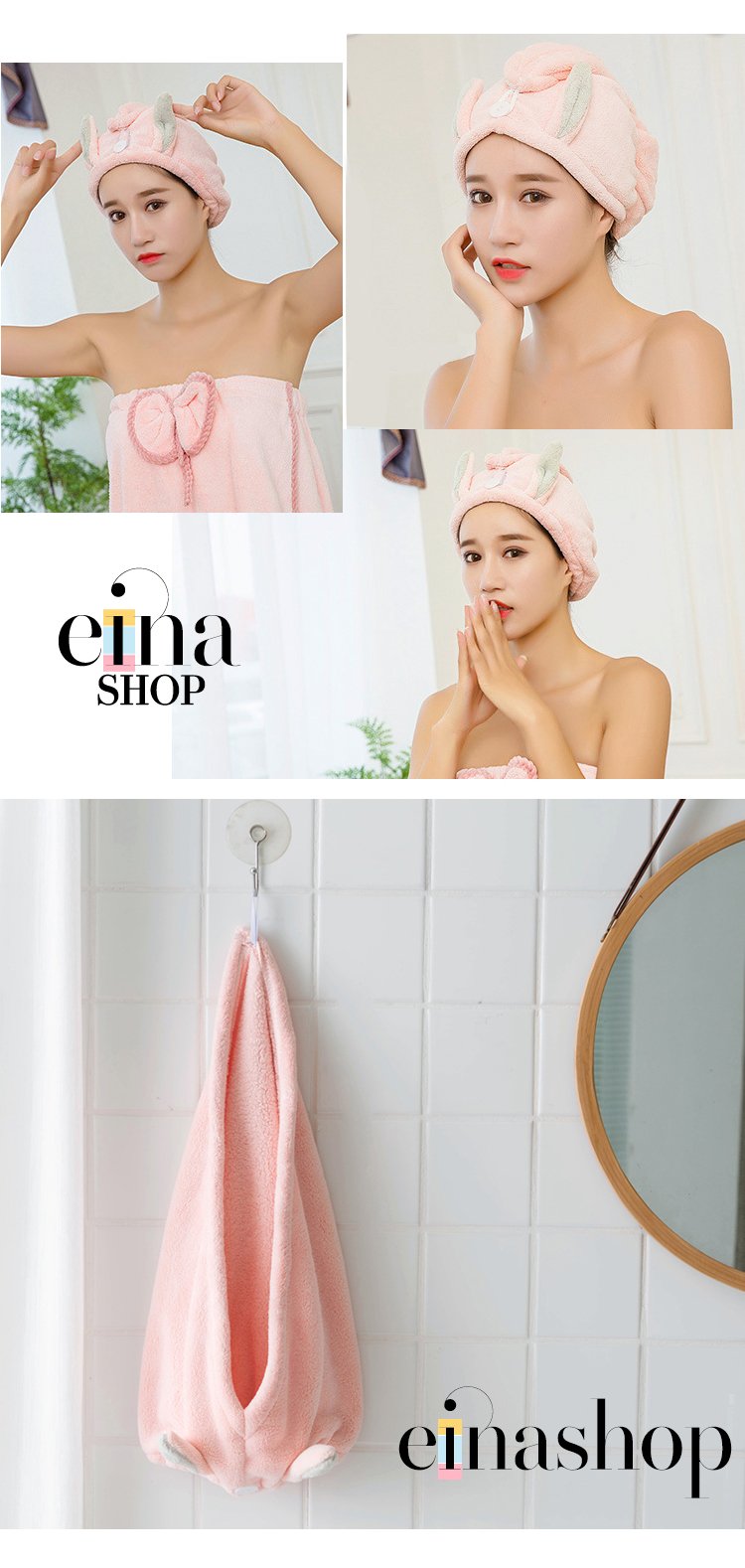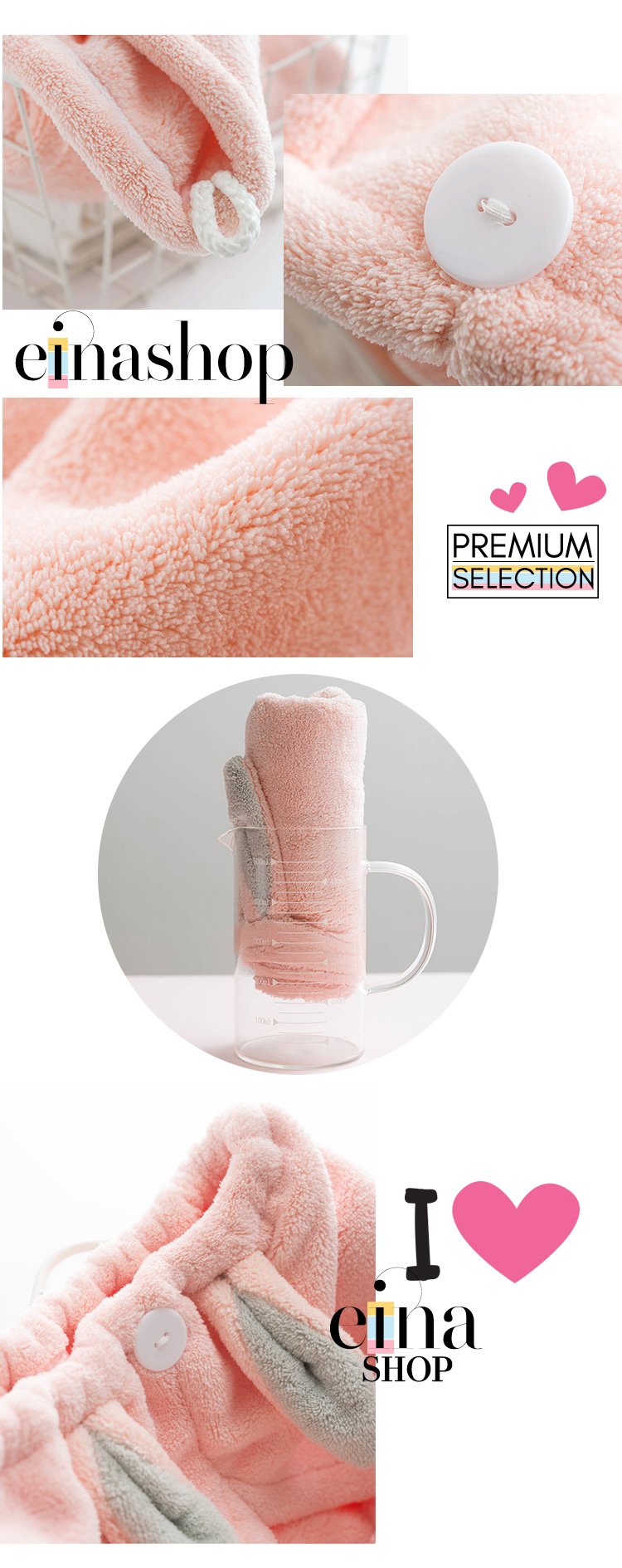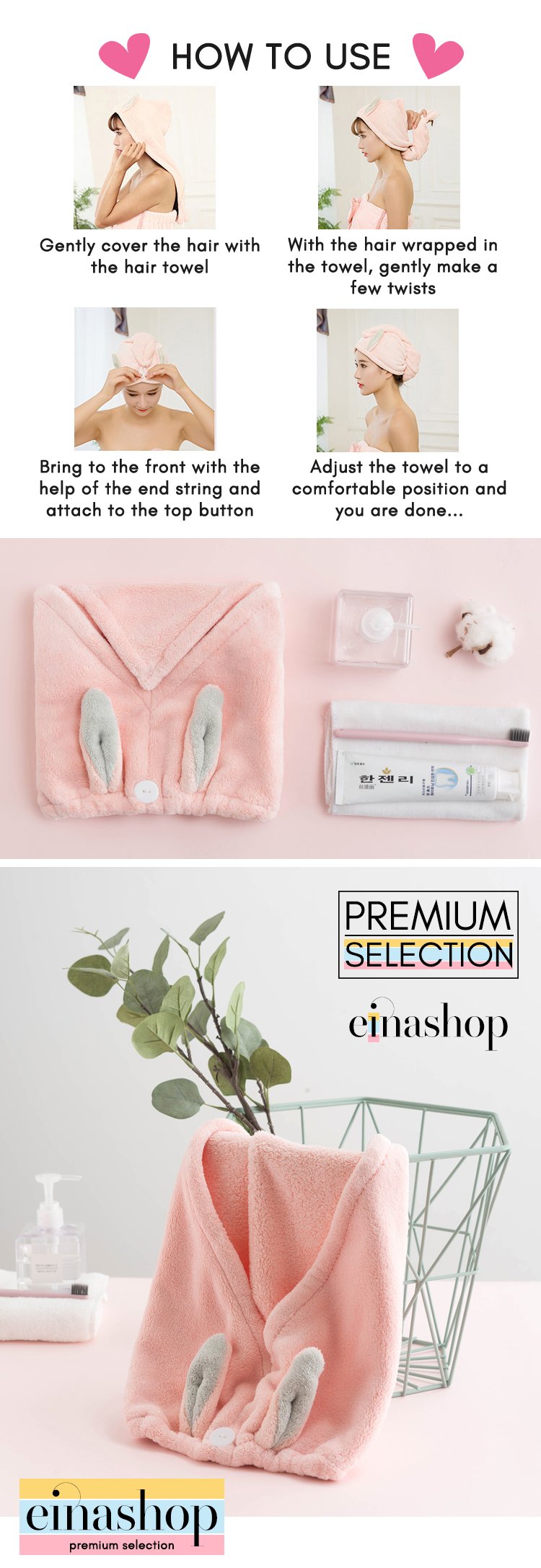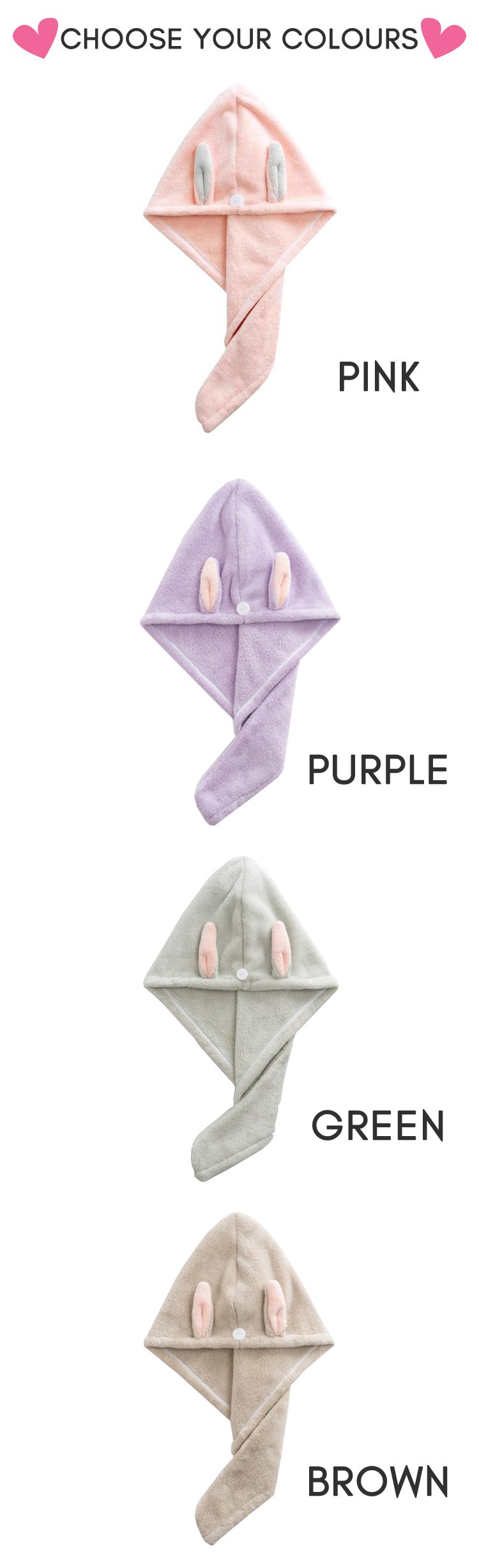 In cute bunny design. The hair towel is high in water absorption. Quick dry. Soft and comfortable.