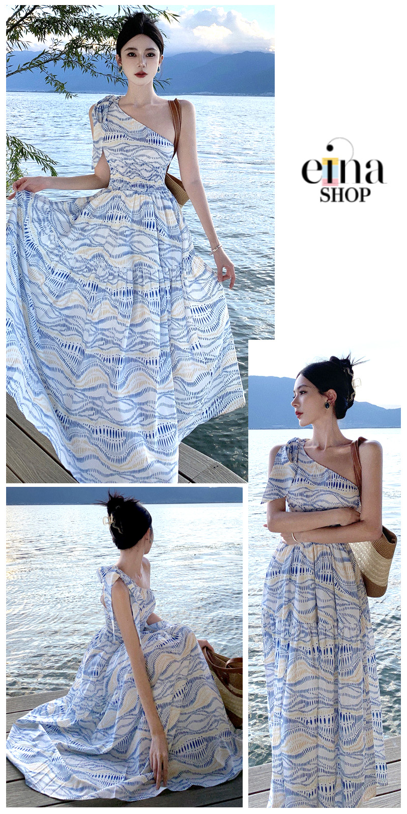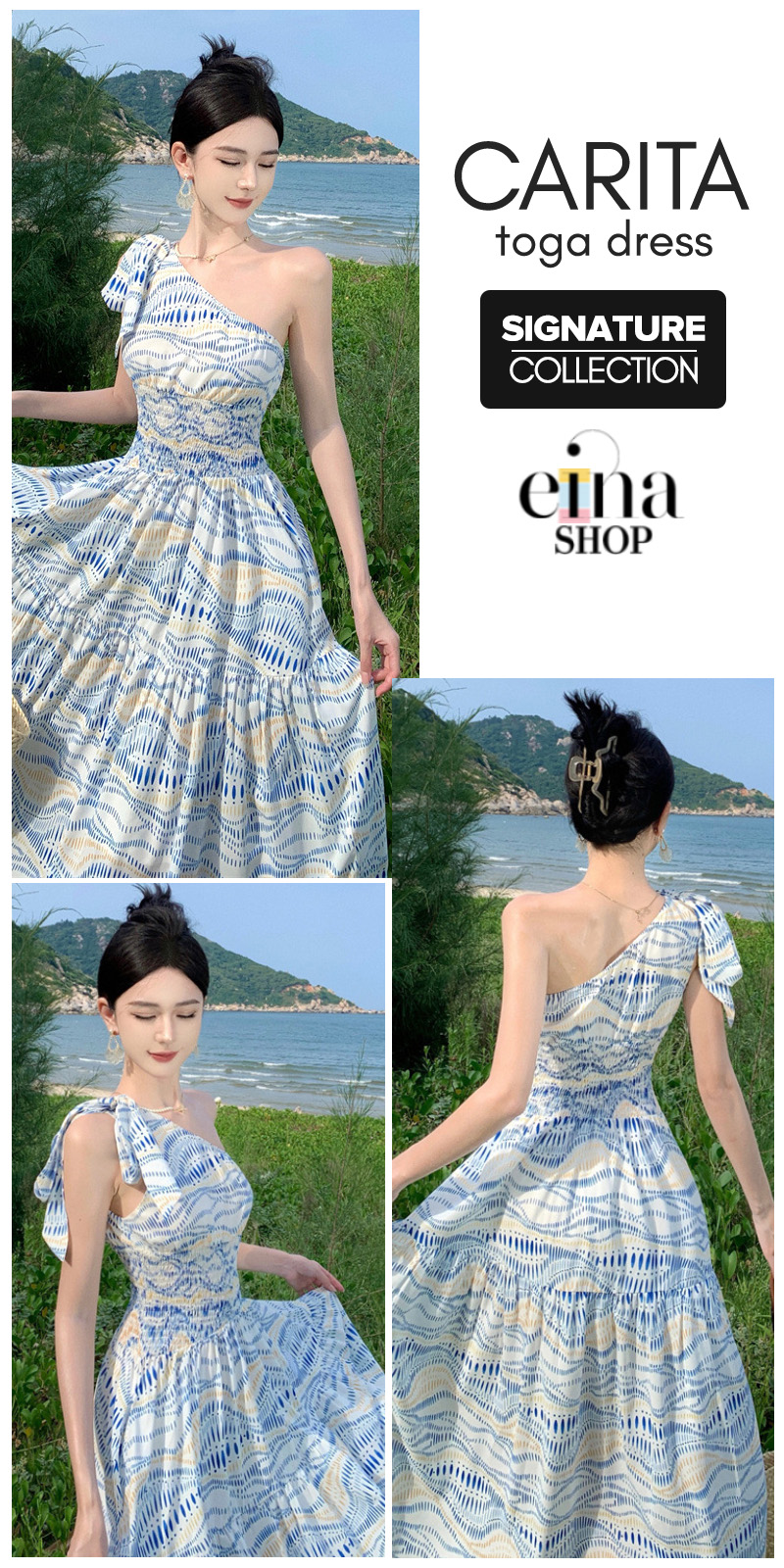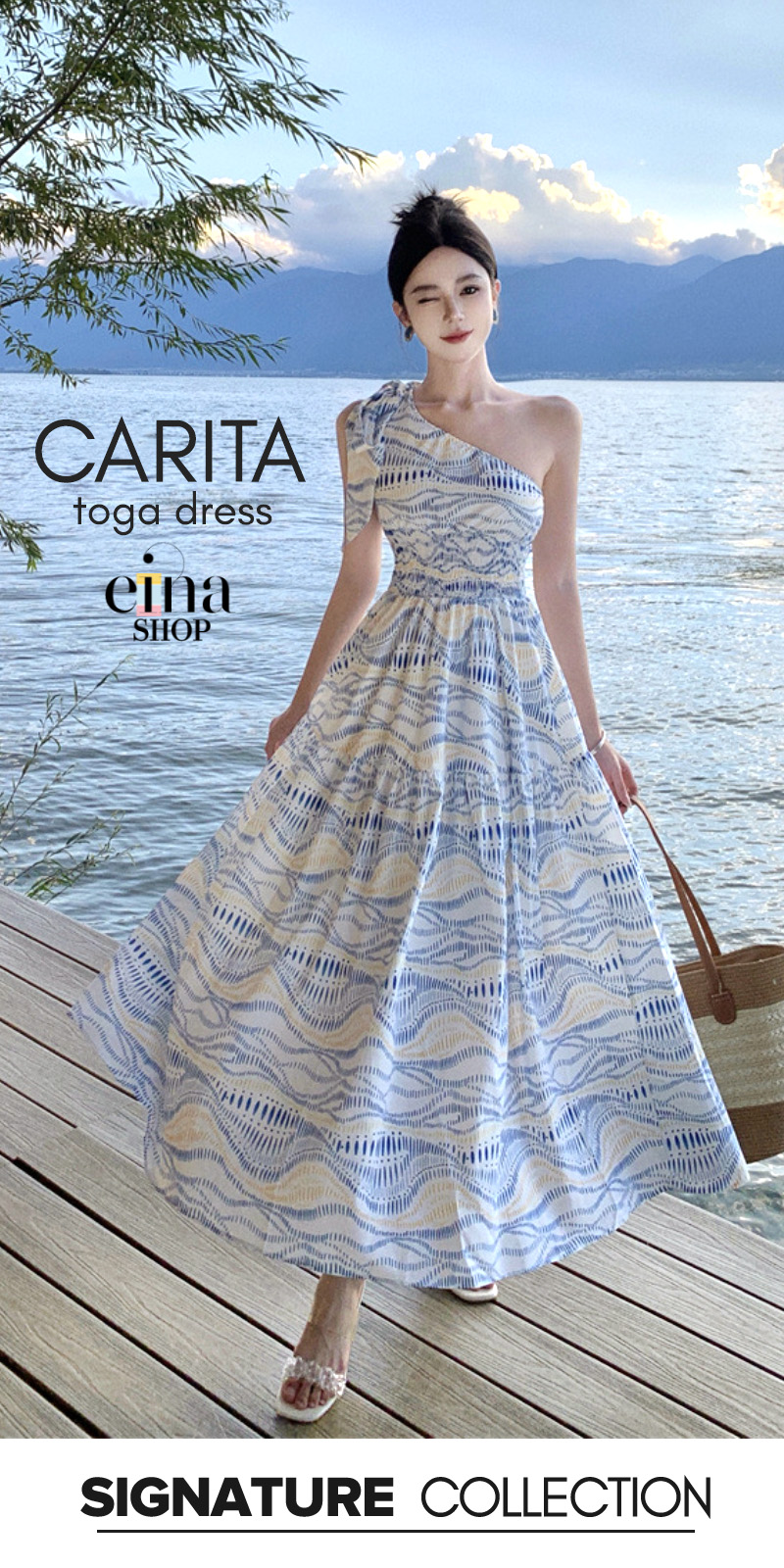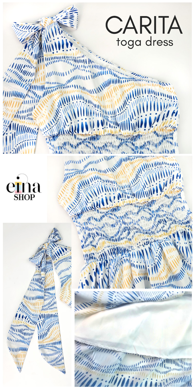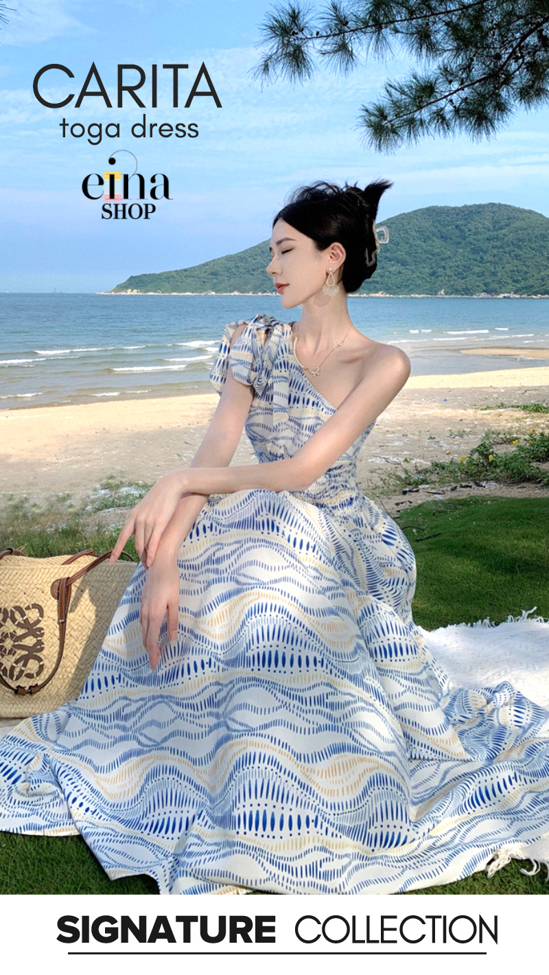 • Carita Toga Print Maxi Dress focuses on the blue and yellow print, ensuring you make a statement wherever you go.