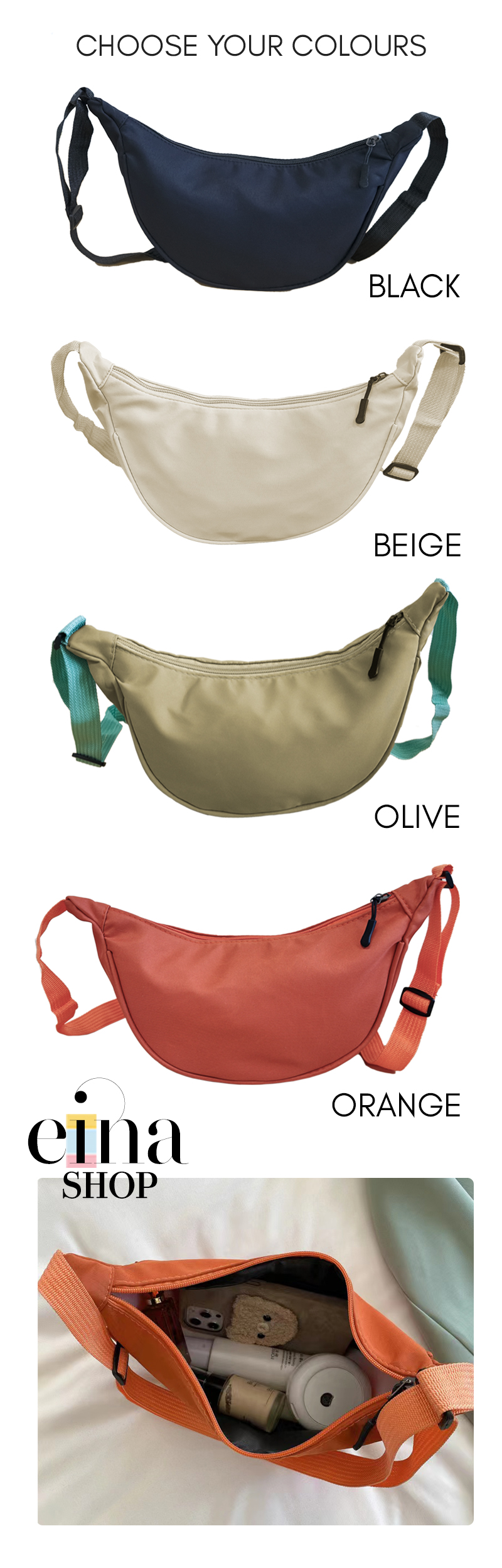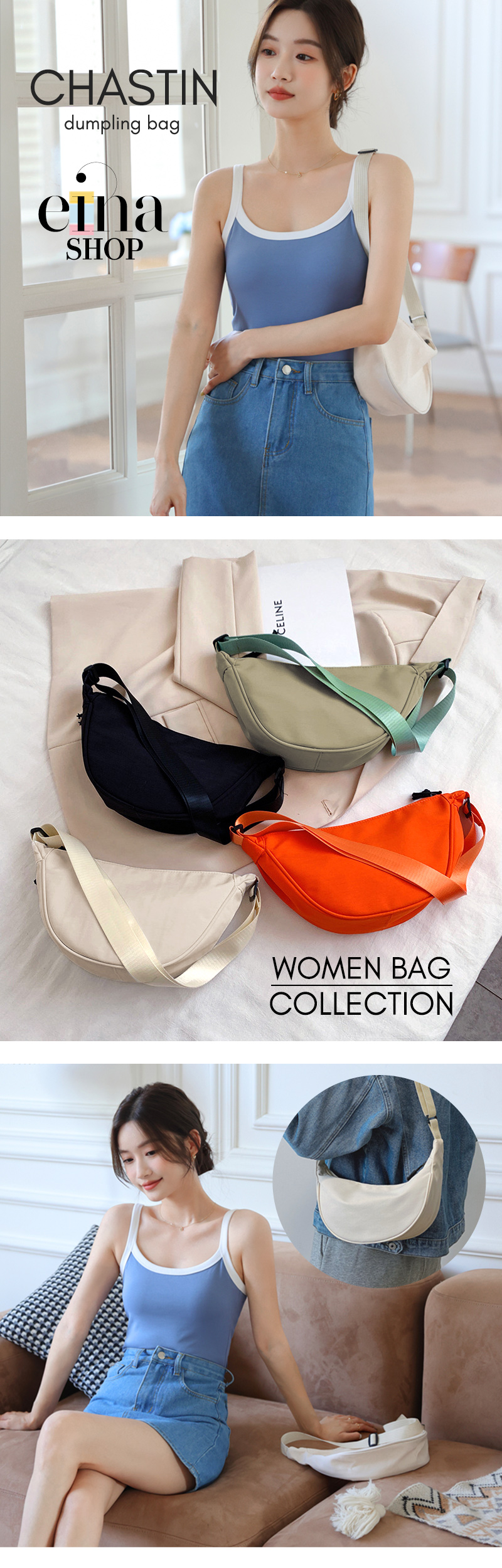 The basic and contemporary in fashion dumpling bag that is the IN thing to get now is available at Einashop.