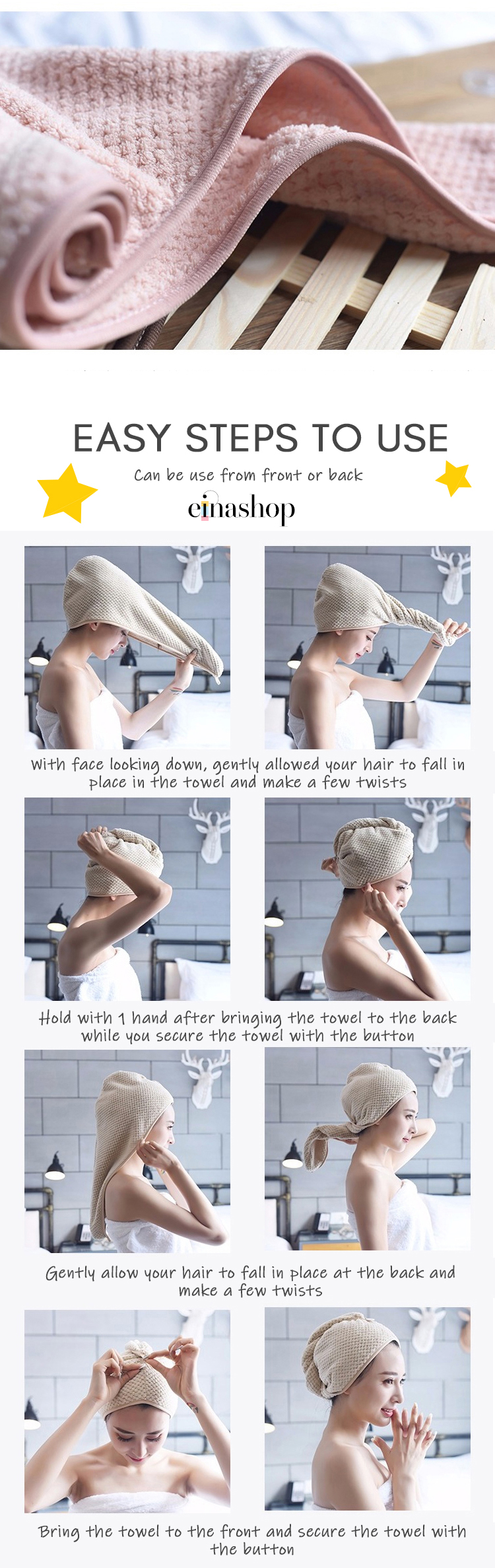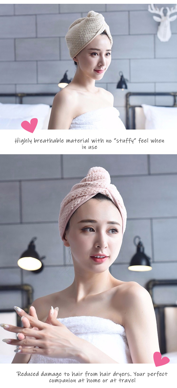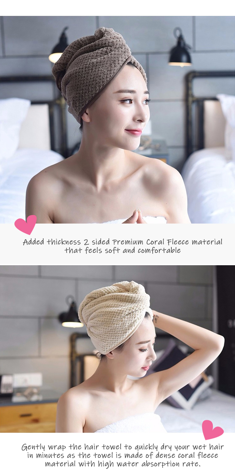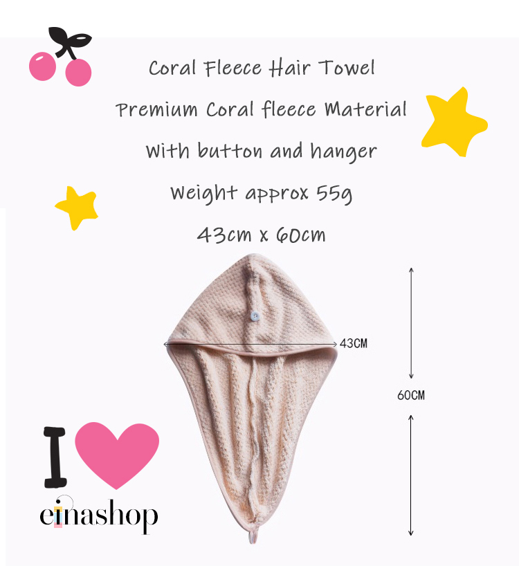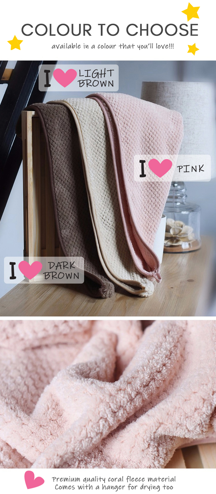 Get 1 Piece of this Quality Premium Coral Fleece Hair Towel at our Super Price Now. The hair towel is highly absorbent. Quick dry. Soft and comfortable.
