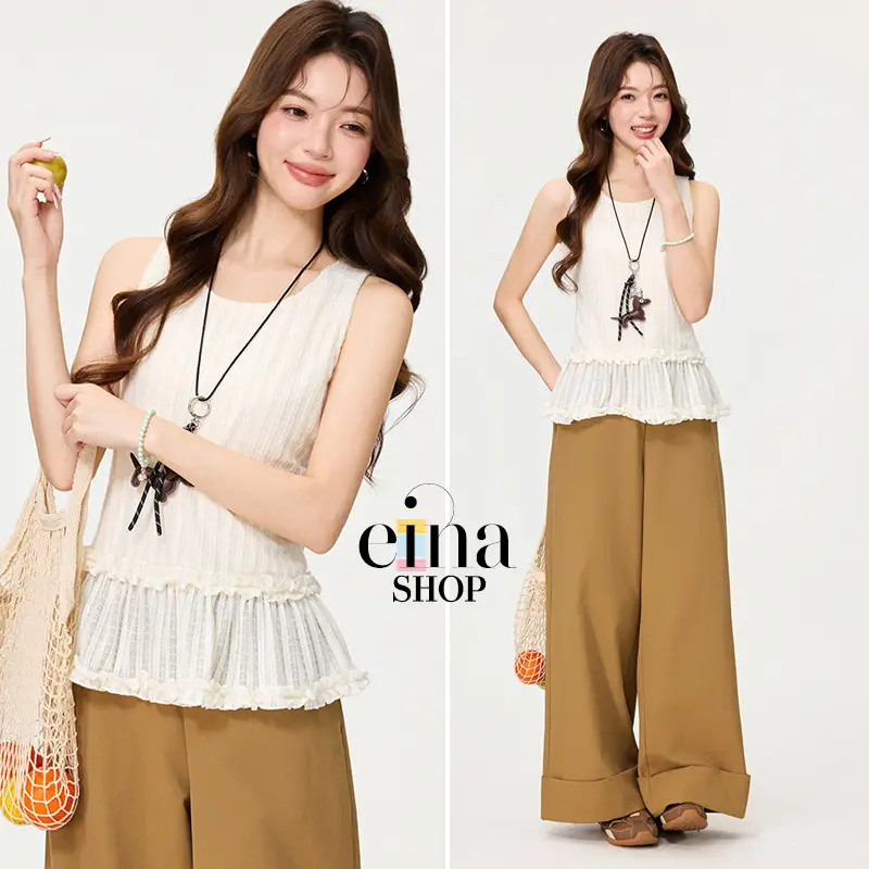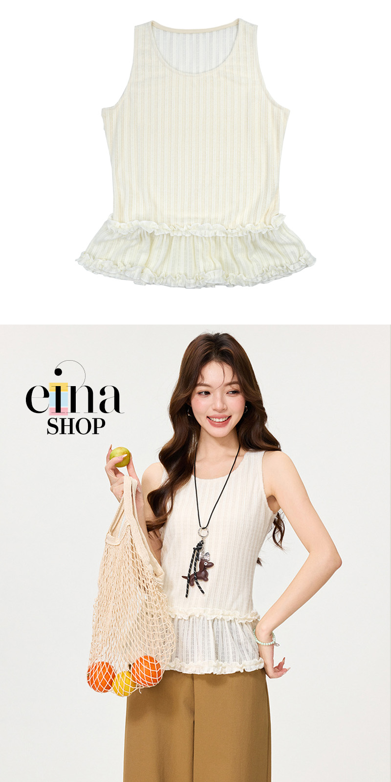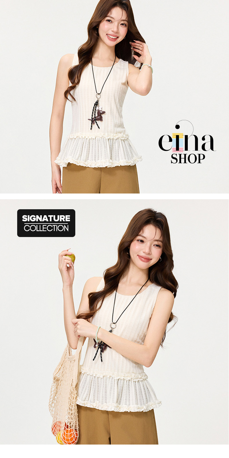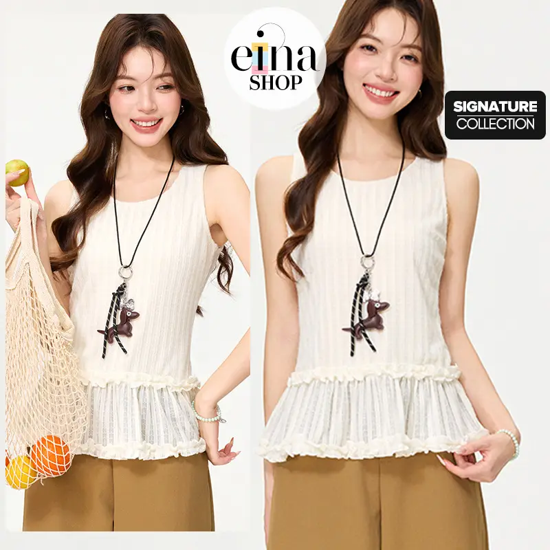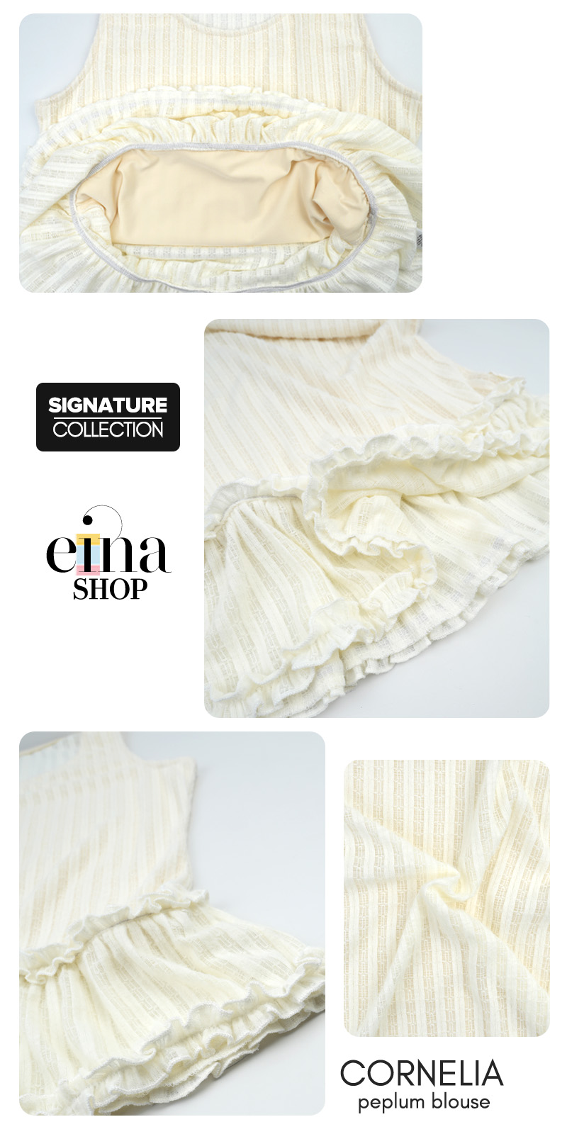 Part of the Einashop Signature Collection, the Cornelia Top combines a breezy sleeveless cut with a playful double-ruffle peplum for a look that’s as sweet as it is sophisticated.
