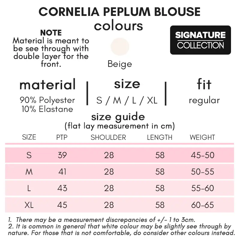 Refer to the provided size guide for the sizing. All measurement is based on lay flat dimensions in cm unless otherwise stated. Weight is in kg. There may be a measurement discrepancies of +/- 1 to 3cm.