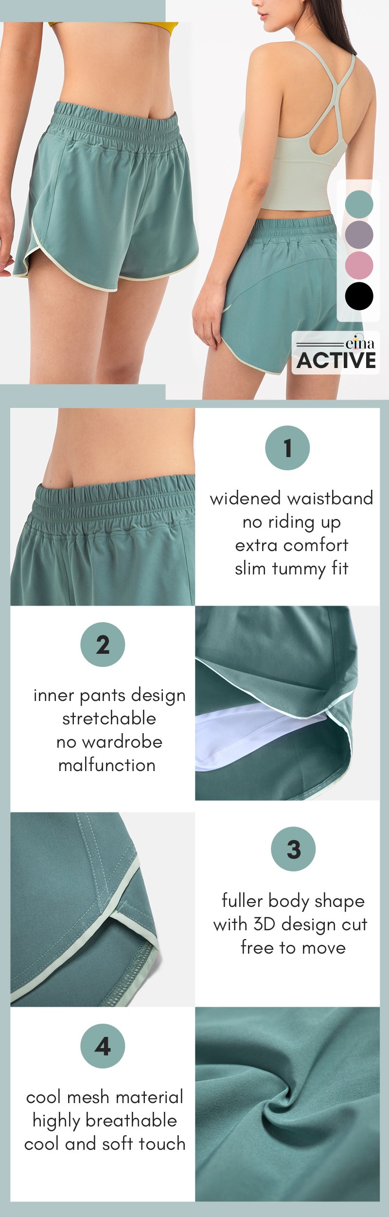 Widened waistband. No riding up and extra comfort. Slim tummy fit. Built-in safety shorts for extra security.