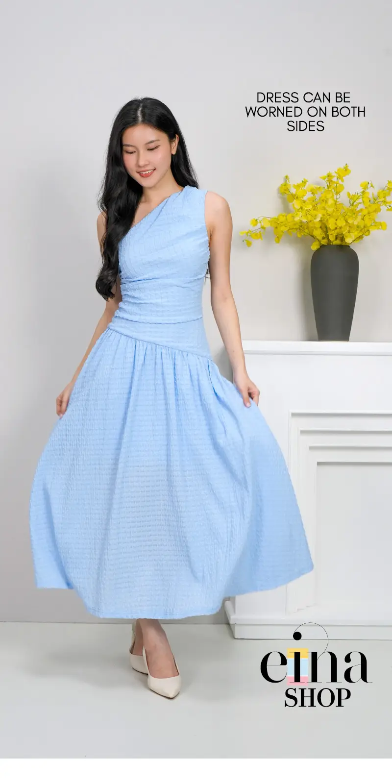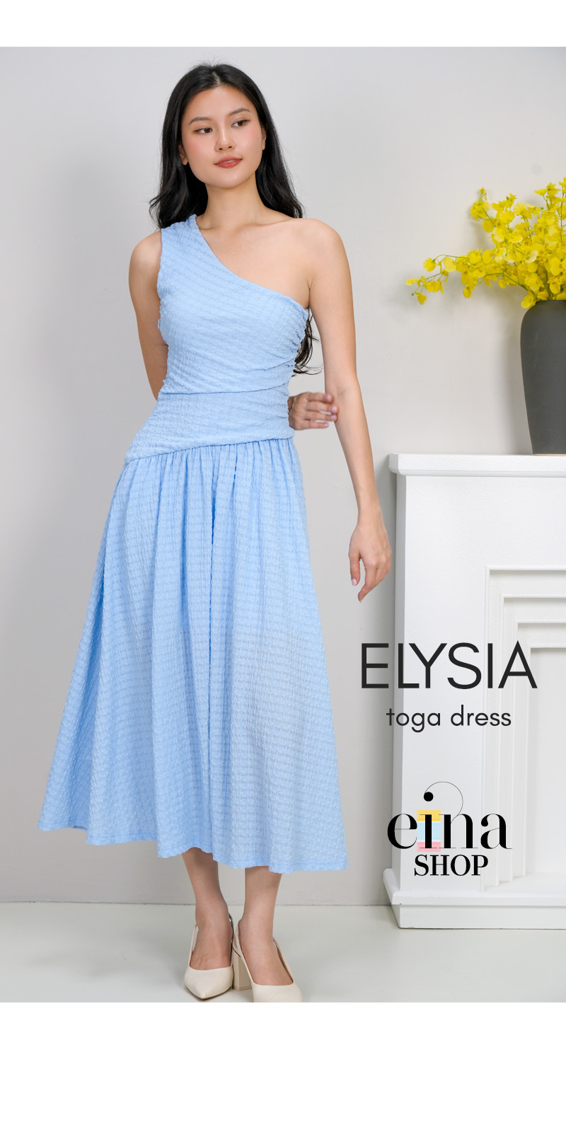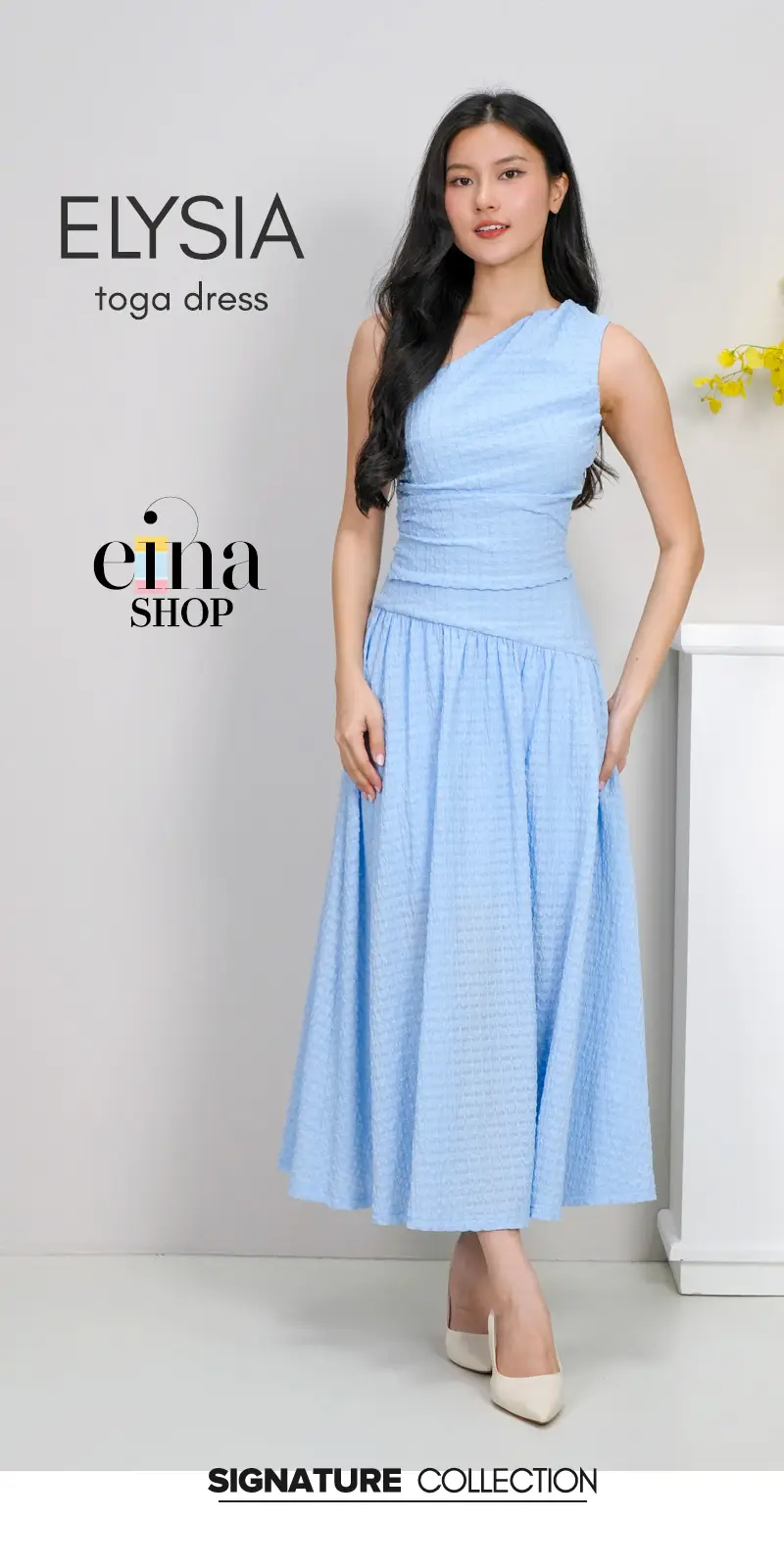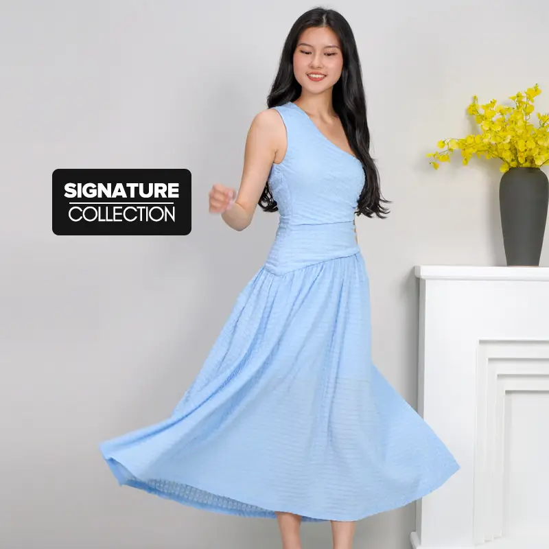 The Design Details- Sculptural Neckline: A striking one-shoulder (toga) design that frames the collarbone and shoulders with asymmetrical grace.