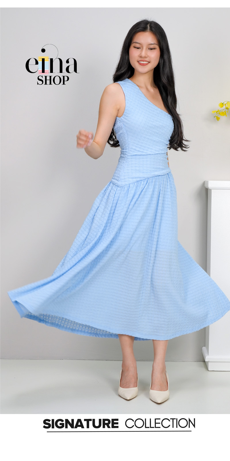 – Fluid Motion: The A-line midi-to-maxi skirt is designed to catch the light and move with ethereal ease, perfect for grand entrances and evening twirls.