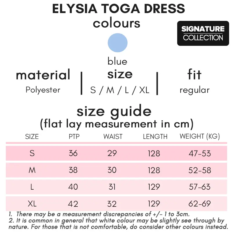Comes in S / M / L / XL. Refer to the provided size guide for the sizing. All measurement is based on lay flat dimensions in cm unless otherwise stated. Weight is in kg. There may be a measurement discrepancies of +/- 1 to 3cm.