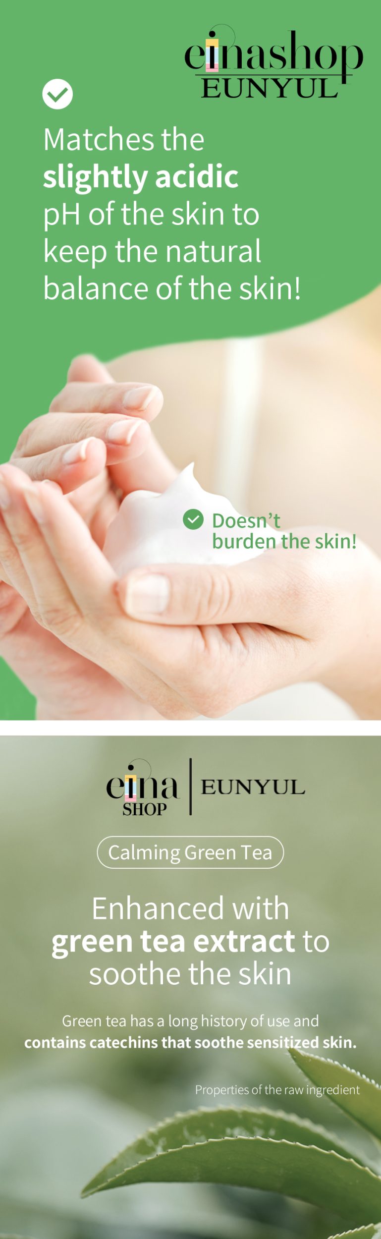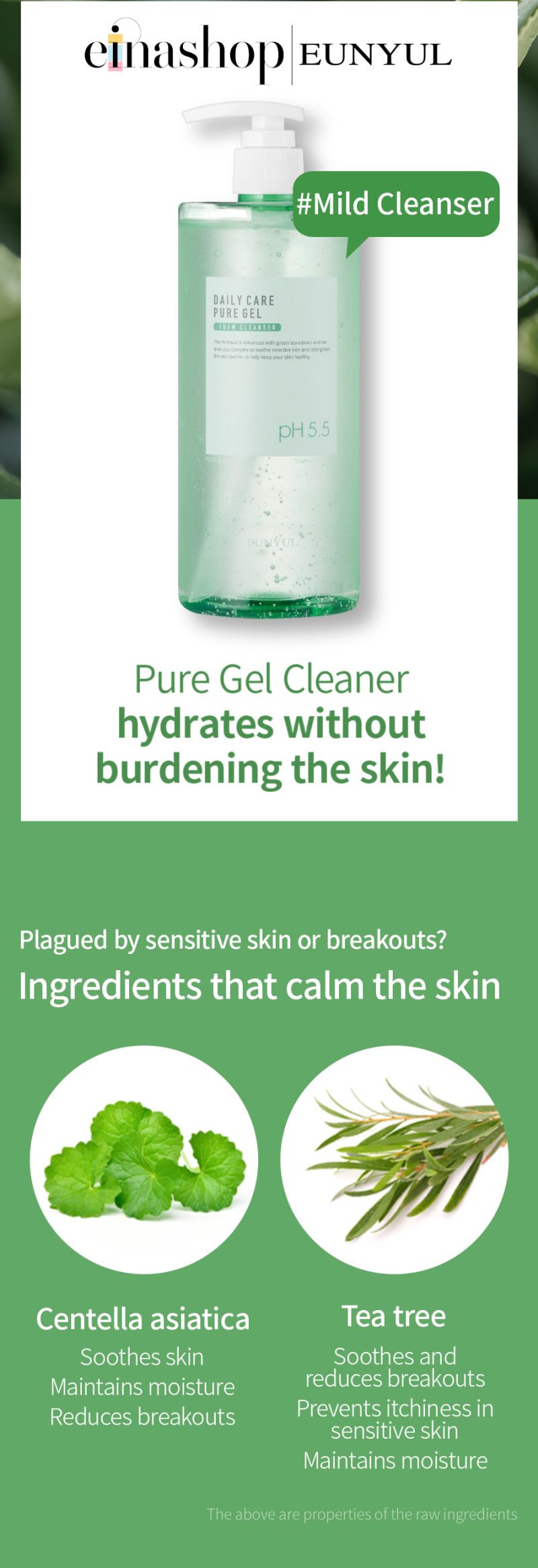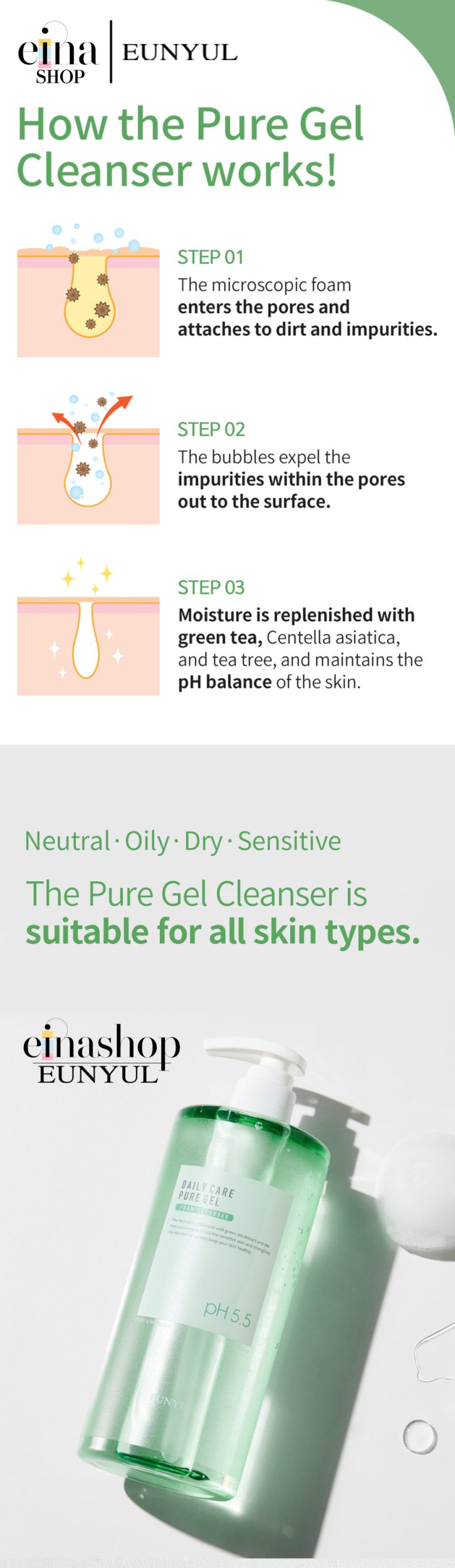 • Eunyul Daily Care Pure Bubble Gel Foam Cleanser is a slightly low-pH cleanser. It matches the slightly acidic pH of the skin to keep the natural balance of the skin.
