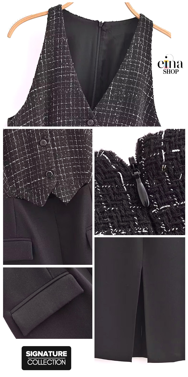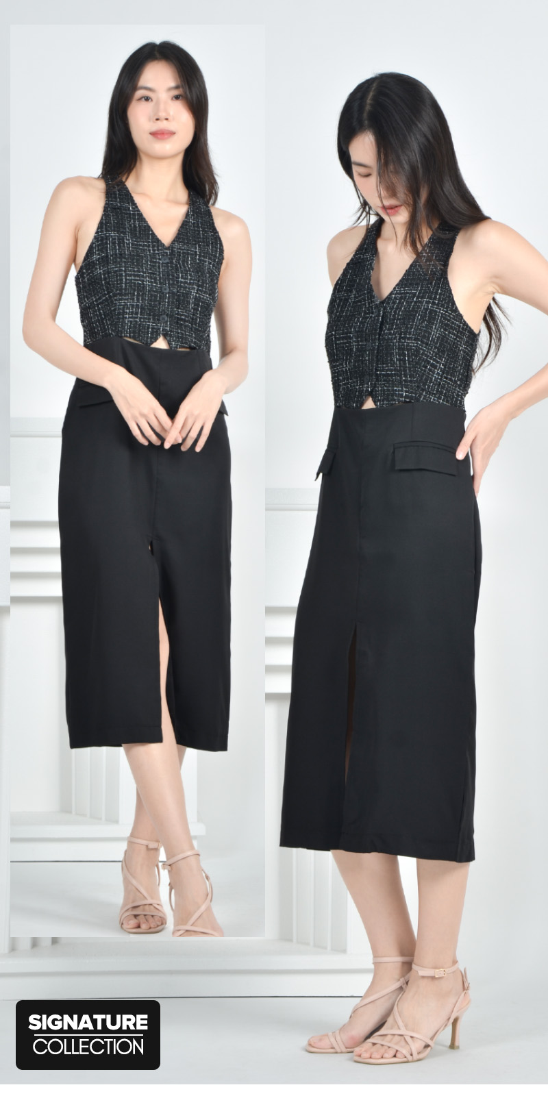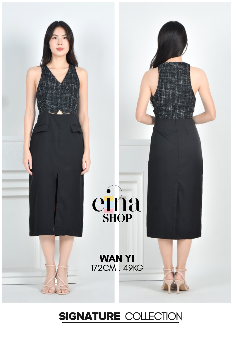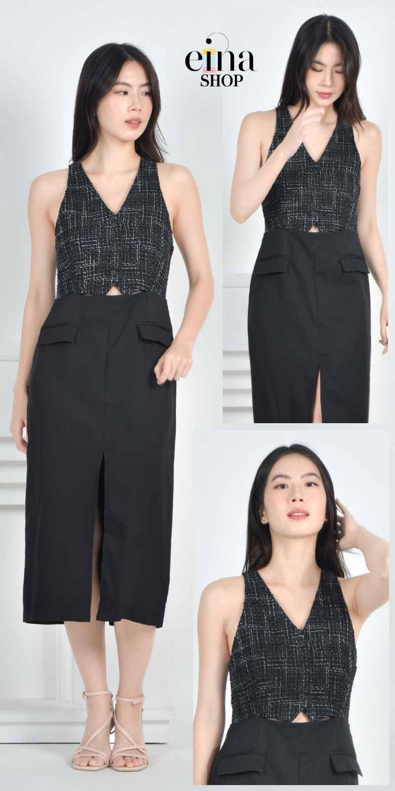 • Fake 2 piece design with front and back slit allowing ease of movement.