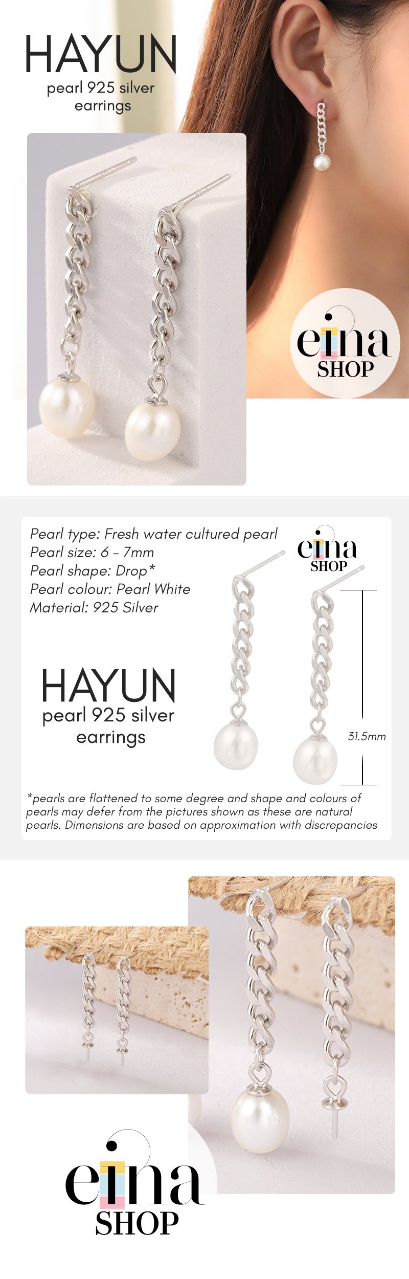 Pearls are flattened to some degree and shape and colours of pearls may defer from the pictures shown as these are natural pearls. Dimensions are based on approximation with discrepancies