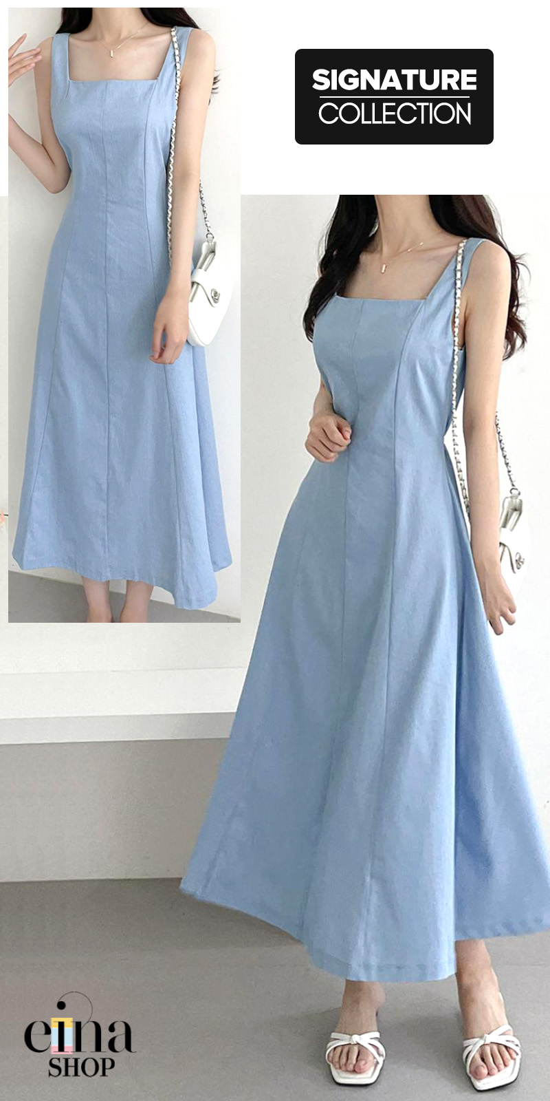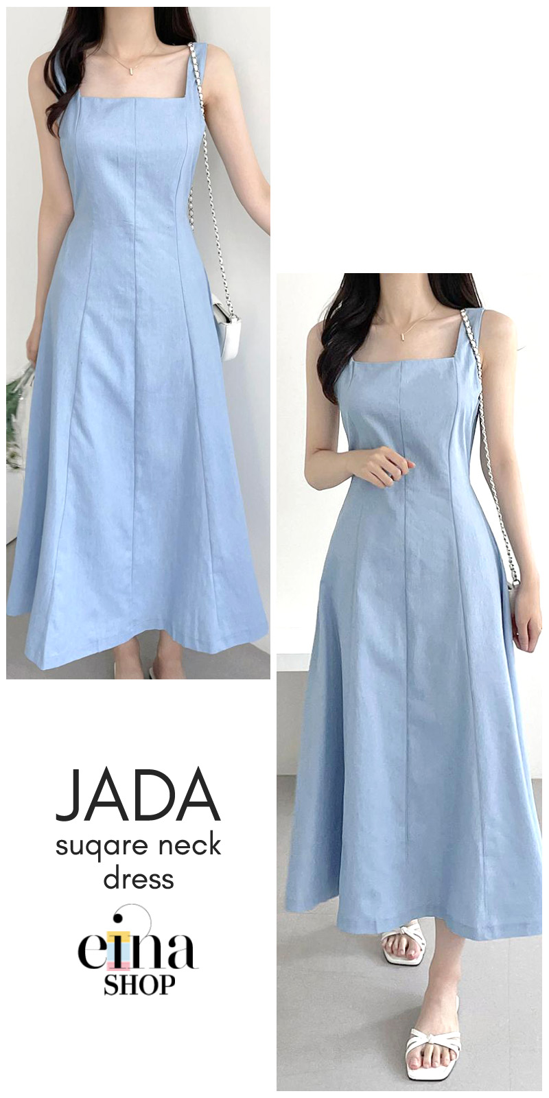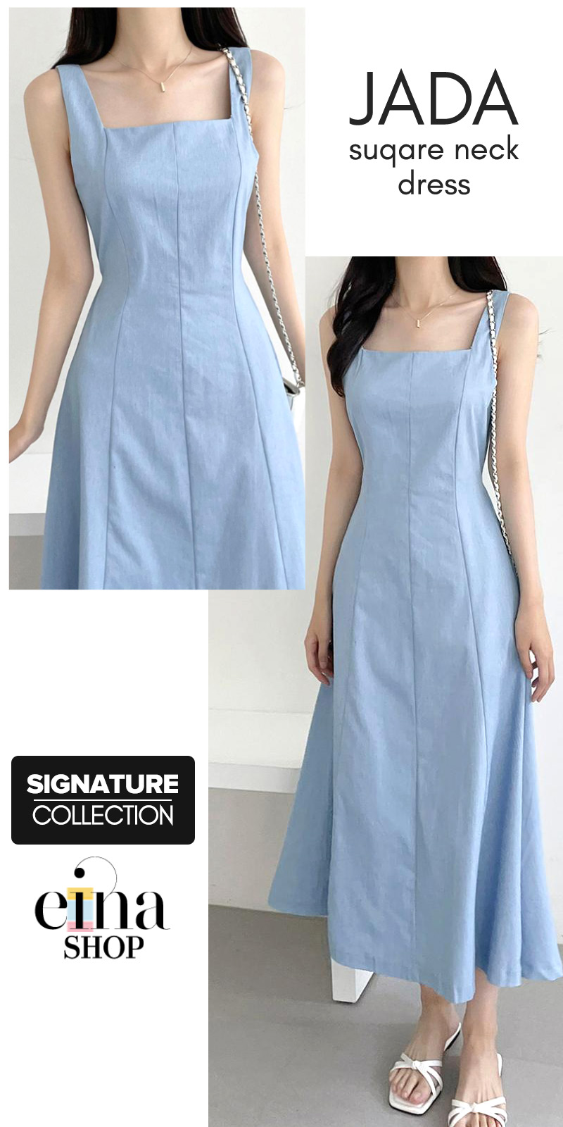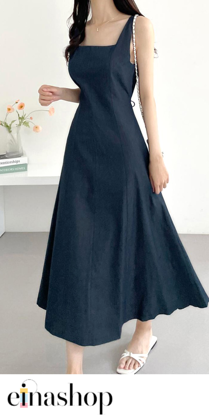 The dress features a square neckline, adding a touch of elegance to any outfit.
