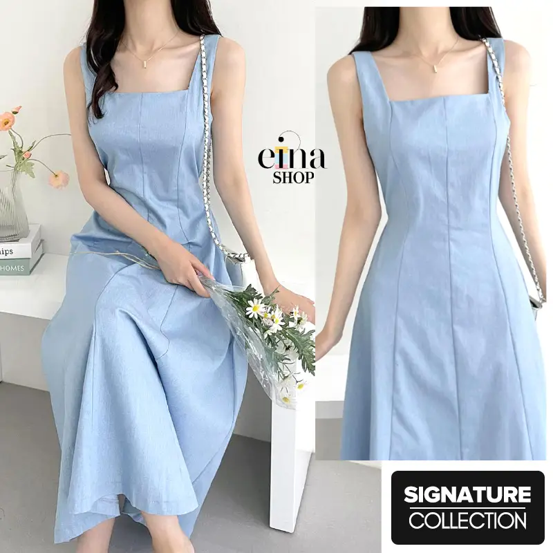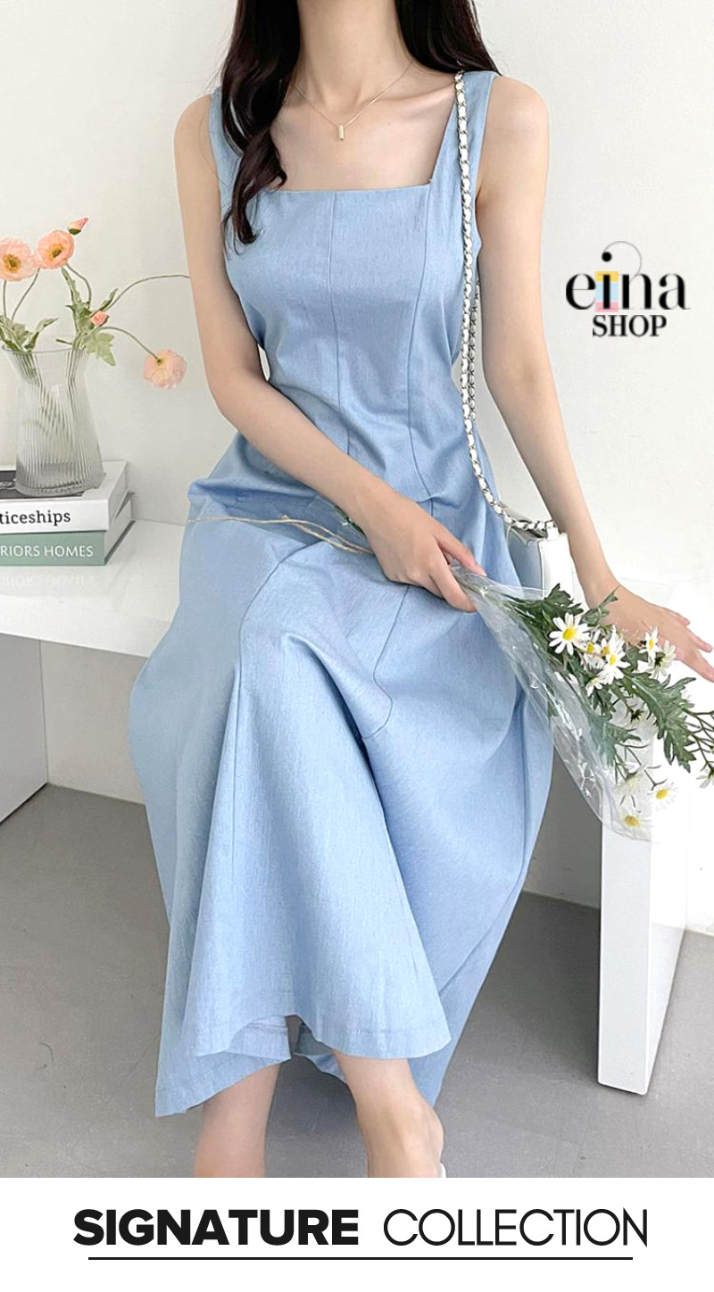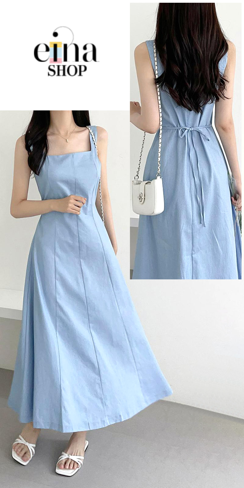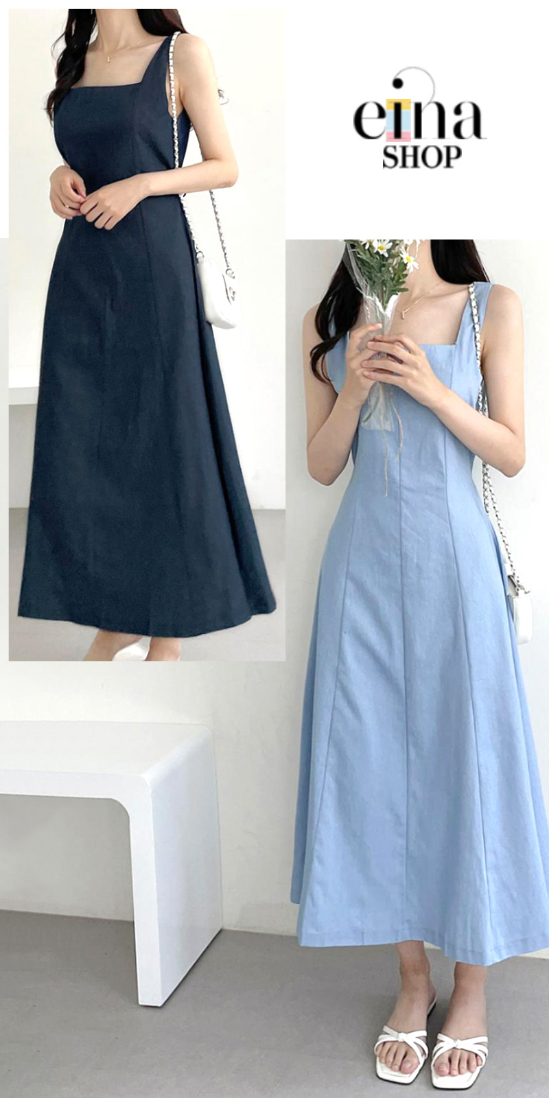 The dress features a square neckline, adding a touch of elegance to any outfit.