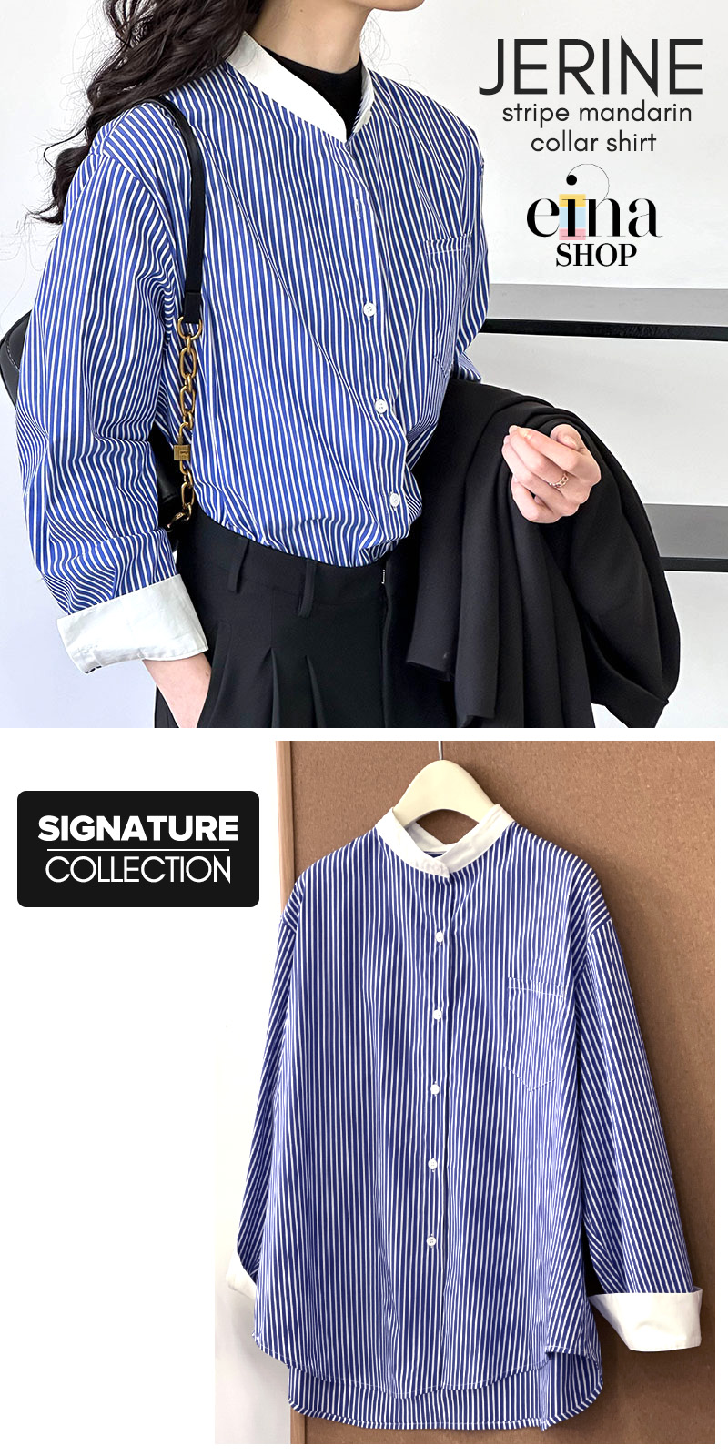 Jerine Stripe Mandarin Collar Shirt Signature Collection