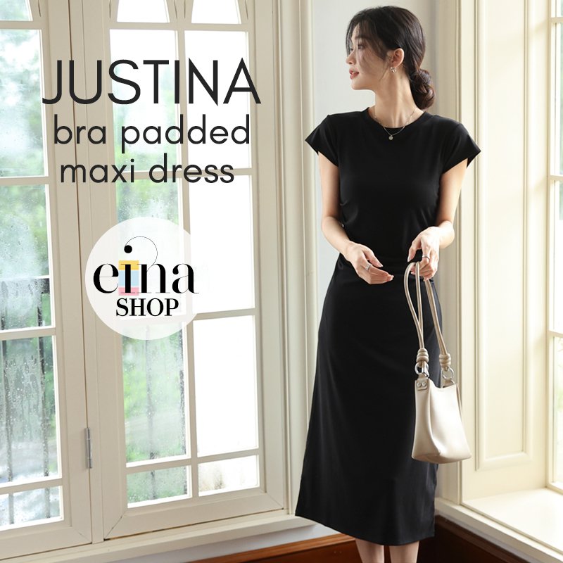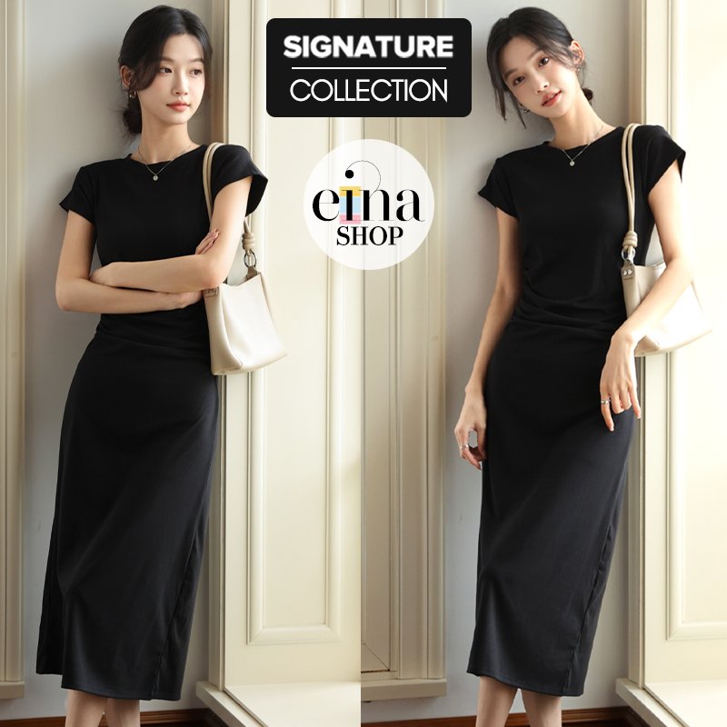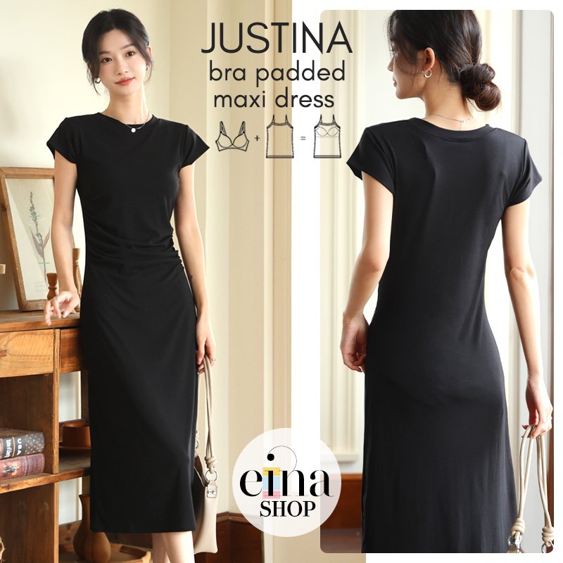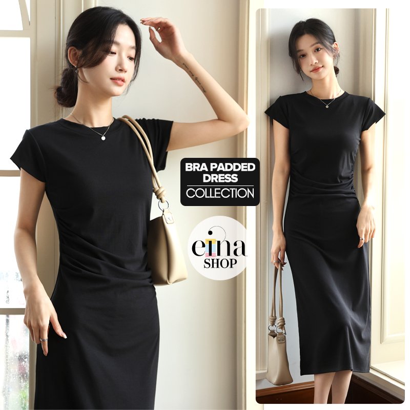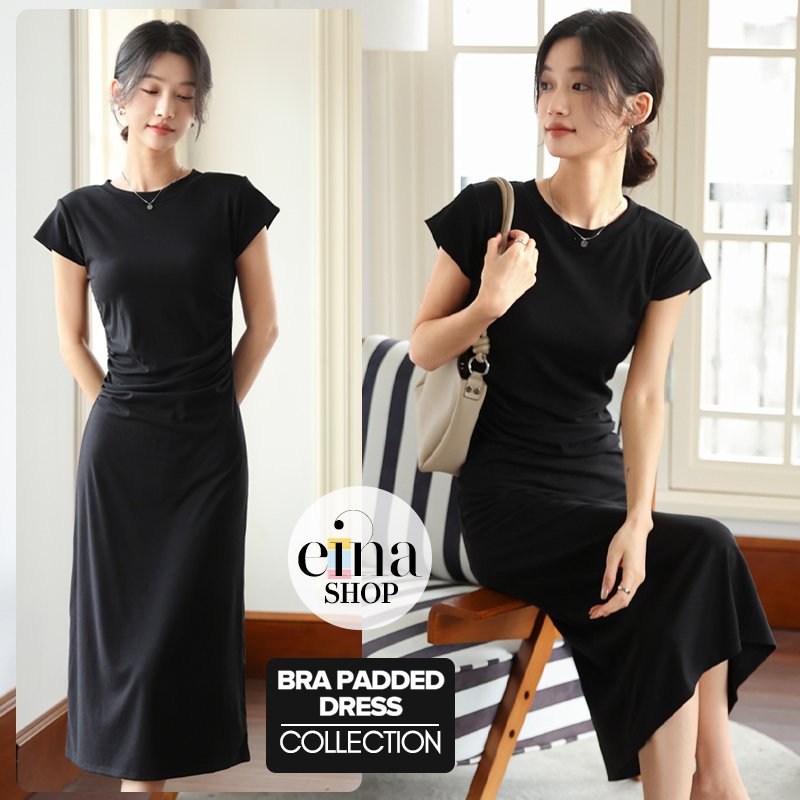A versatile modern round-neck maxi dress comes with a bra padding from Einashop dress collection.
