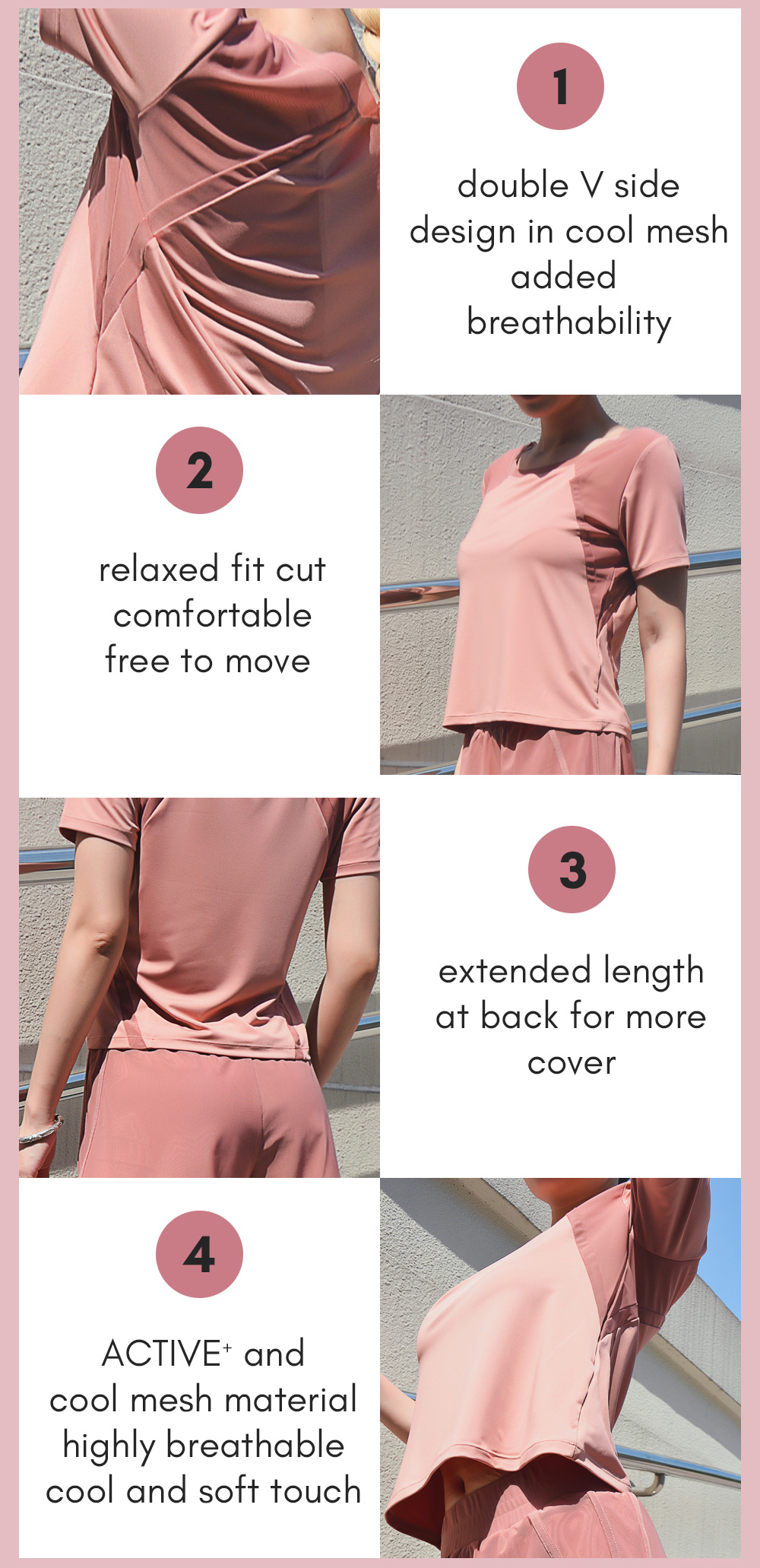 Double V side design in the cool mesh. Added breathability. Relaxed fit cut for comfort. “Khloe Shorts” also available.