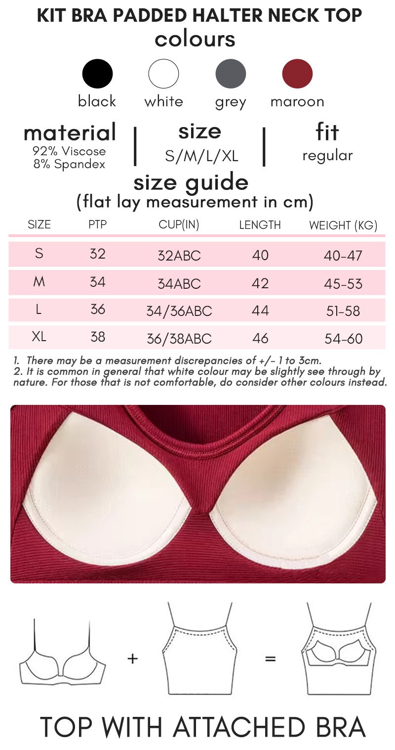 Comes in BLACK / WHITE / GREY / MAROON. **Please note that WHITE colour may be considered slightly see-through for some and the padding lines may appeared to be more obvious due to the nature of the WHITE colour. Please consider a darker colour instead. Black and darker clothes to be washed separately from other colors to prevent color bleeding and fading. The colour might different under different light and camera.**