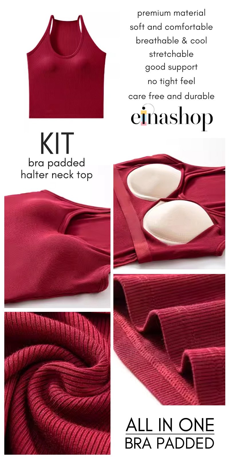 Bra + Tee all in one top – Comfort with convenience. The inner padding is made of high-density top-grade form that retains its shape and volume after numerous use and washes. It is also suitable for machine wash. The inner layer is made of quality 40S combed cotton for added comfort and hygiene.