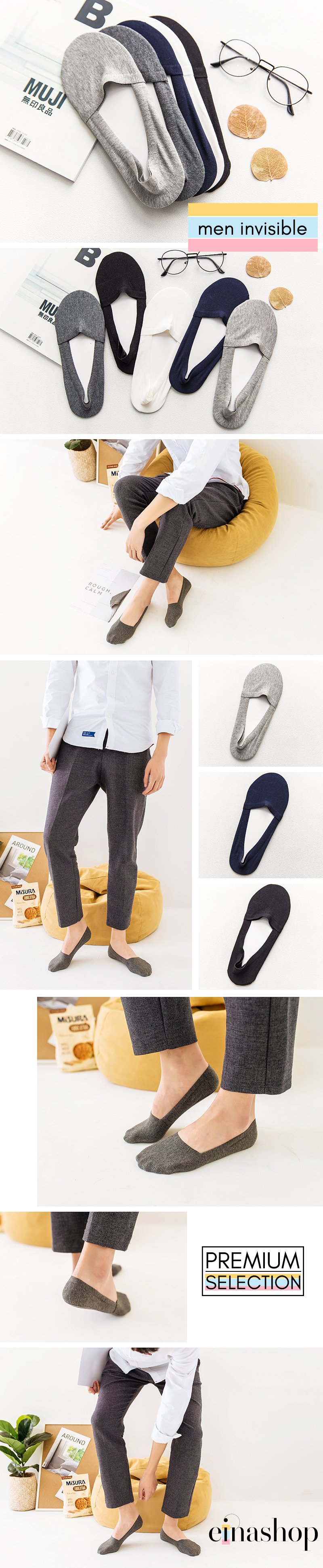 A stylish and jap inspired foot cover of premium workmanship and quality. Soft and comfortable. Stays in place all day with an anti-slip silicone strip all around and at the bottom. In a bundle of 3 pairs.
