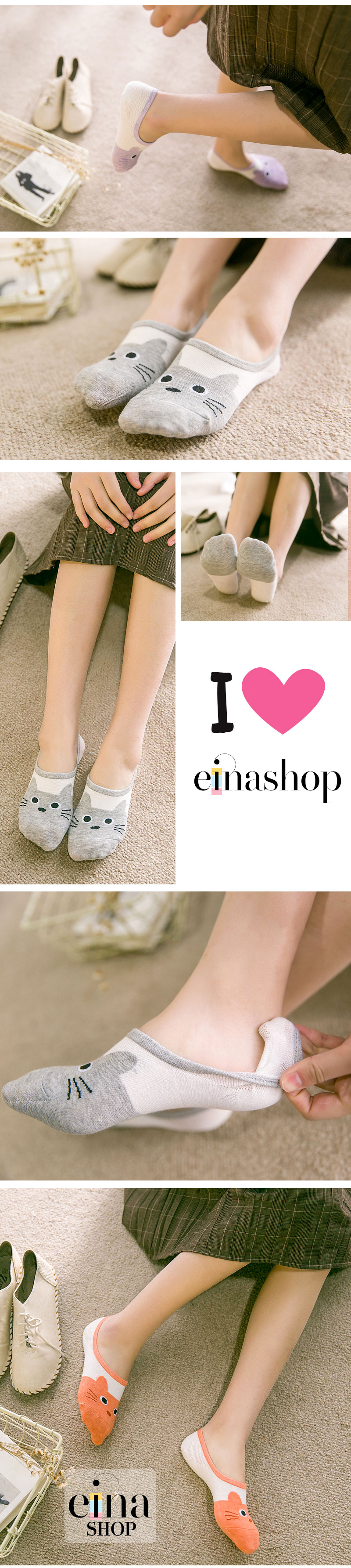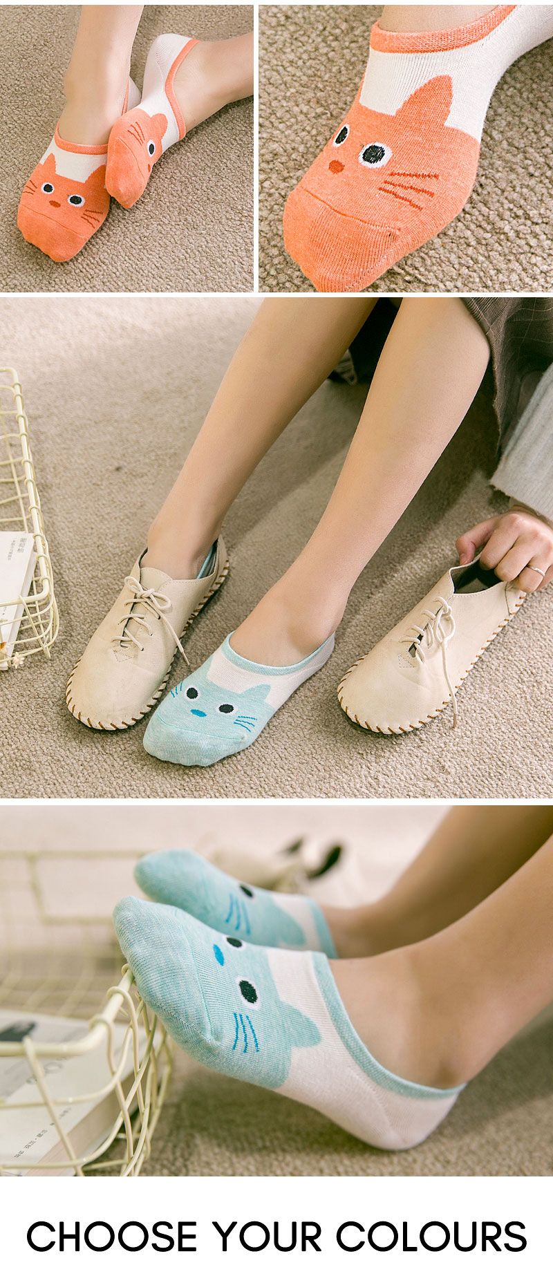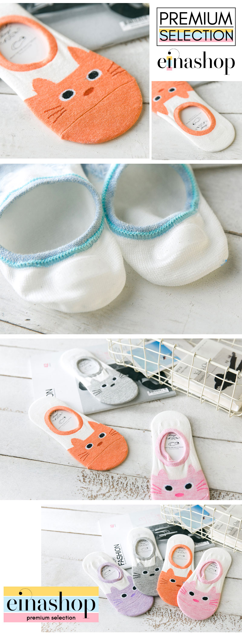 Pure comfort and simply adorable cat print invisible socks. Cute socks that will really make your day when you see it in your wardrobe. Comes with anti-slip silicon stripe at the back.