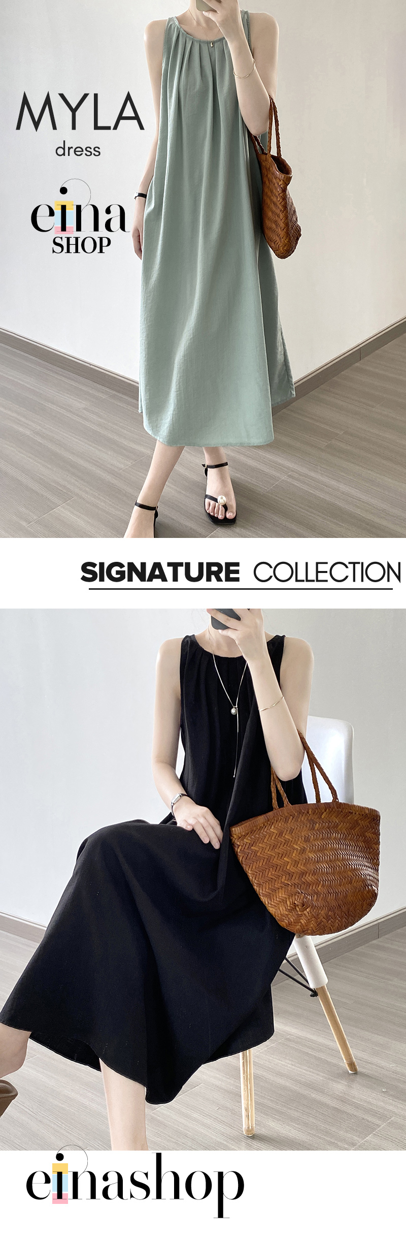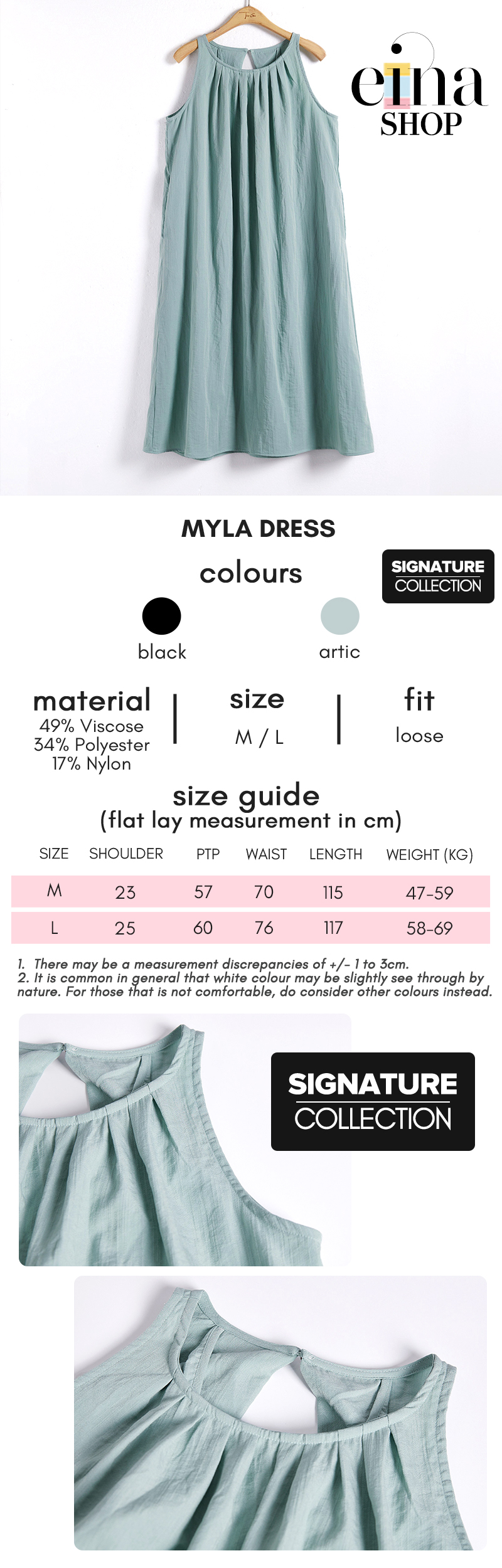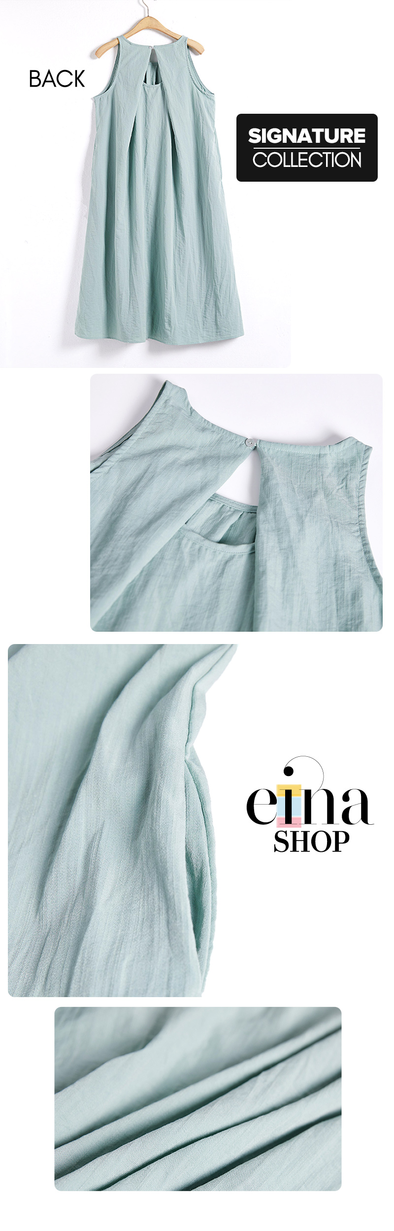 • A versatile and comfortable all day dress that is suitable for all occasions, In a classic round neck line with an elegant pleated front. A intricate back design adds a feminine touch to the overall look. Style with a belt at waist for a different look.