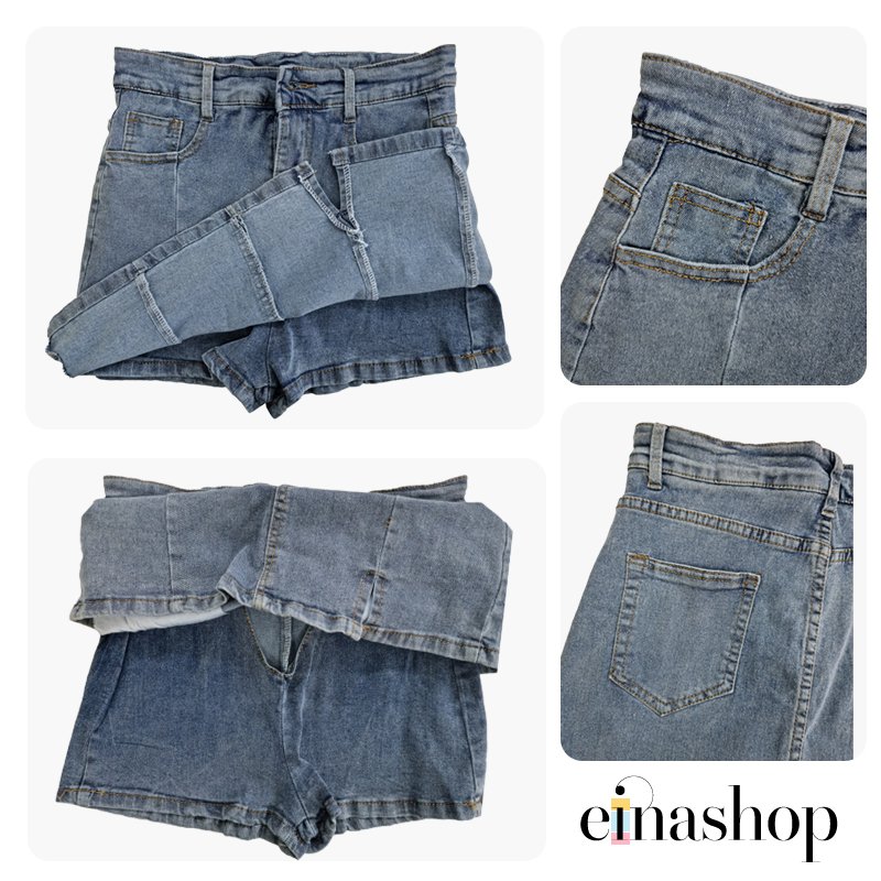 Naomi Denim Skorts is a classic denim mini shorts in a playful skort design.