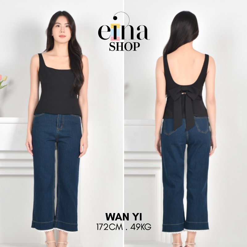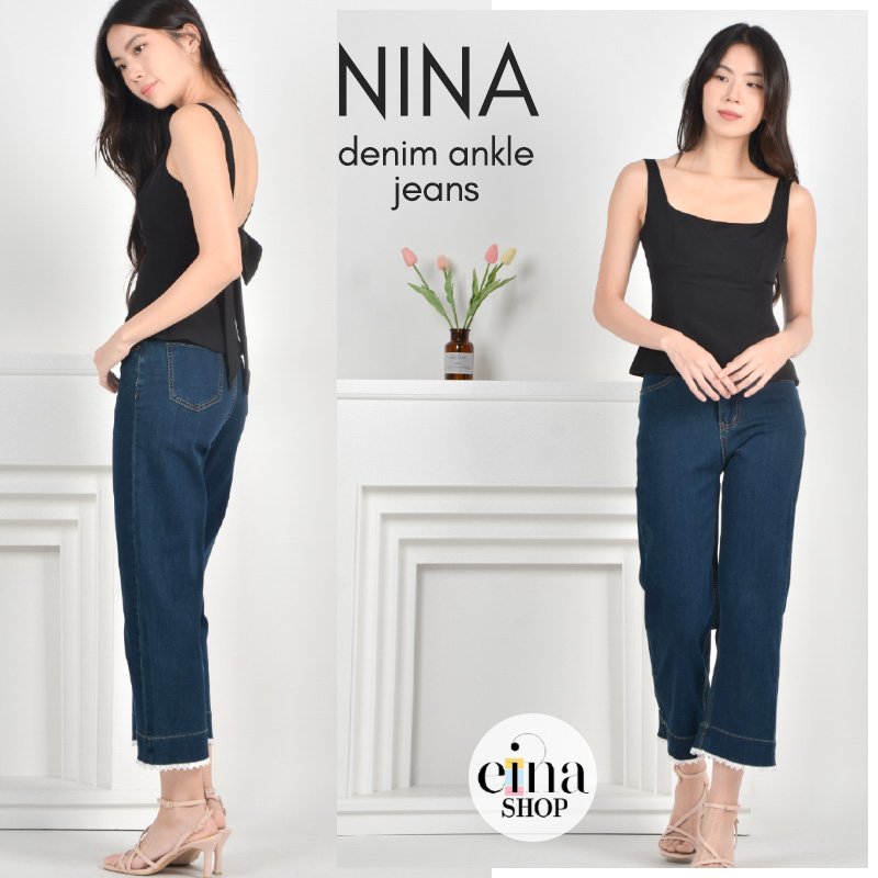 The Nina Denim Ankle Pants feature a high waist, perfect for a sleek silhouette.