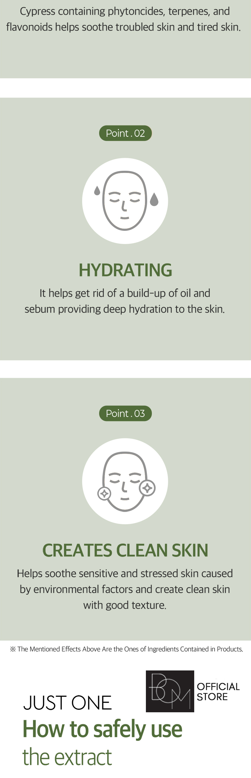 Calming – Cypress containing phytoncides, terpenes, and flavonoids helps soothe troubled skin and tired skin.