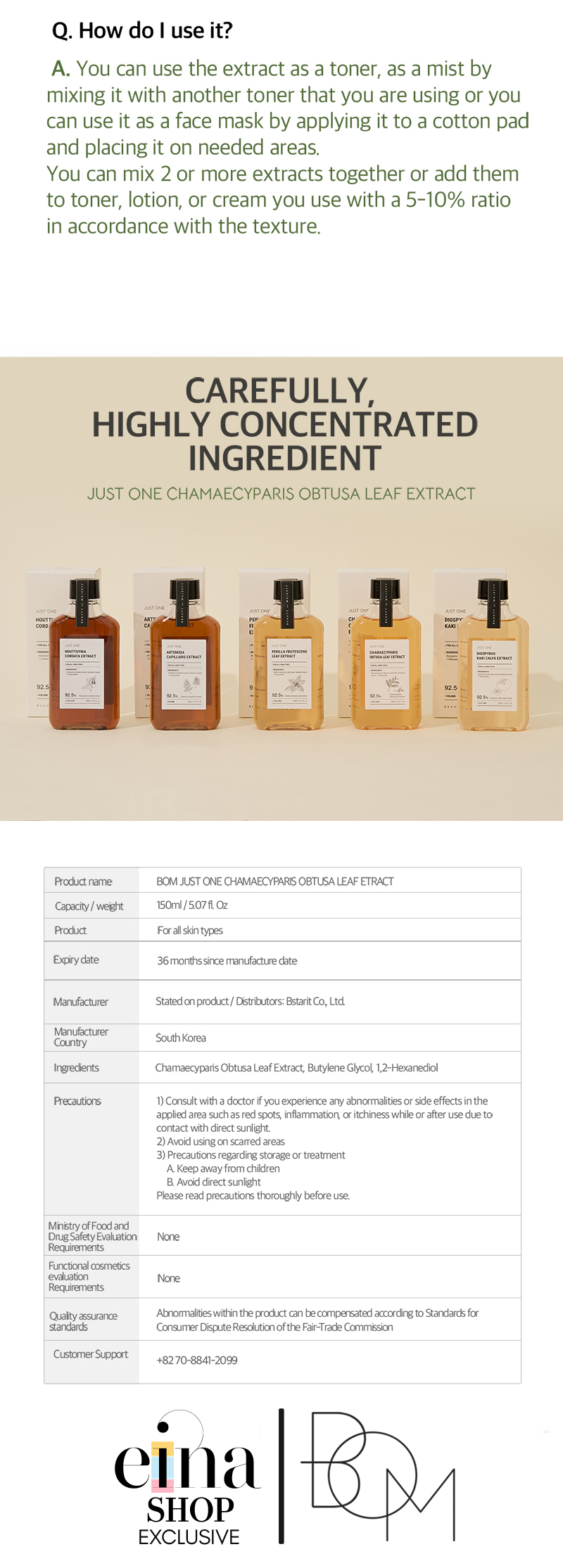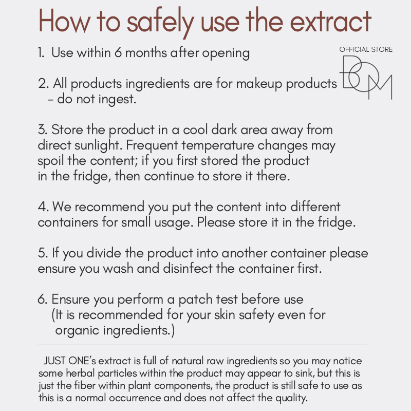 BOM Korea Just One Herbal 92.5% Extract Skin Care Series.