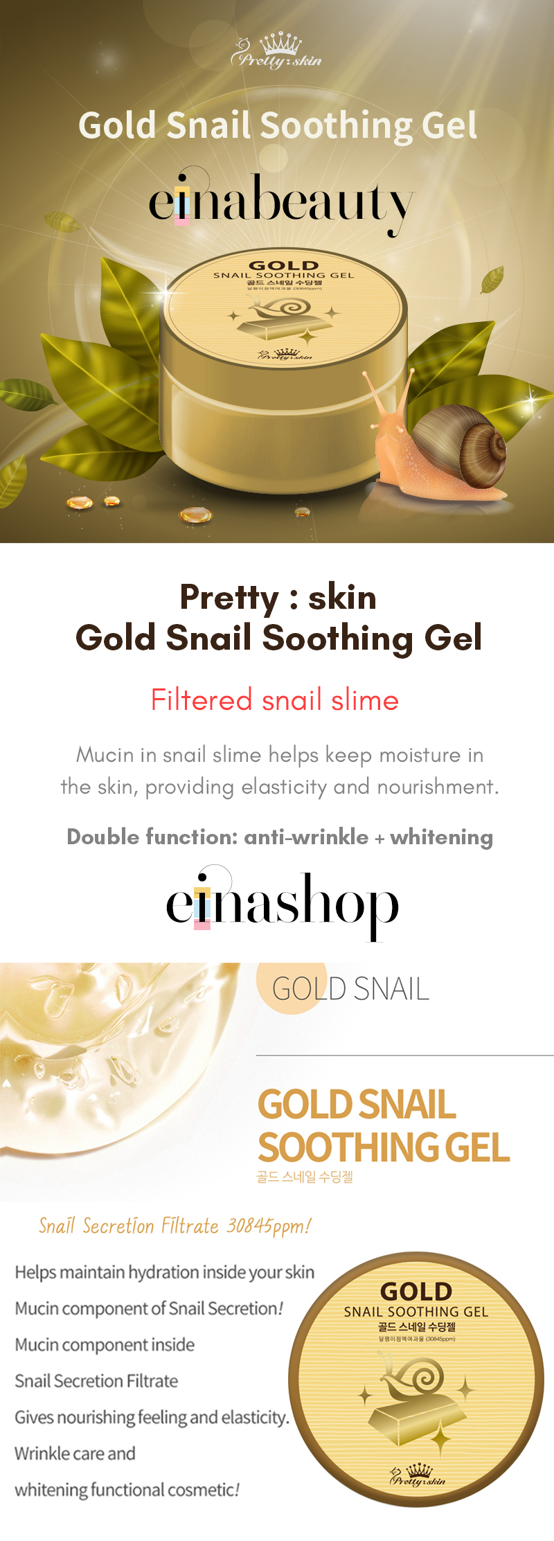 Bundle of 3 Prettyskin Gold Snail Soothing Gel Prettyskin is another hot beauty and skincare brand from Korea that is now under Einashop & Einabeauty.
