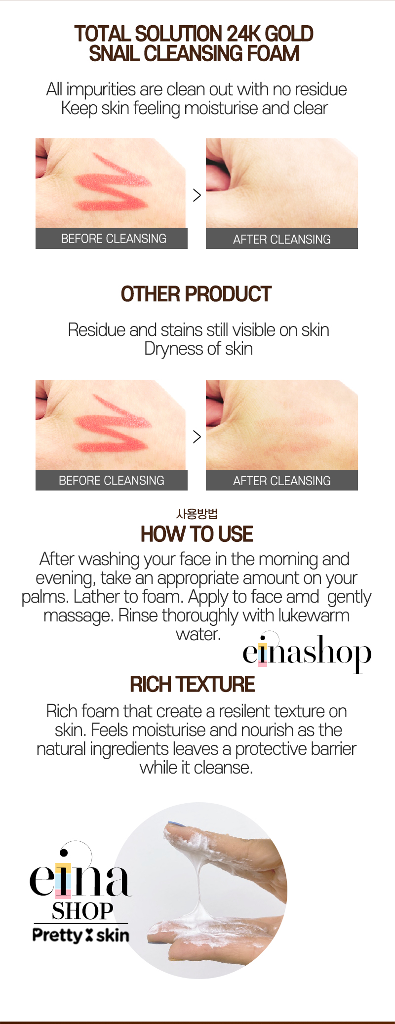 Bundle of 2 items includes 1Total Solution 24k Gold Snail Cleansing Foam and 1 Total Solution 24K Gold Snail Peeling Gel.