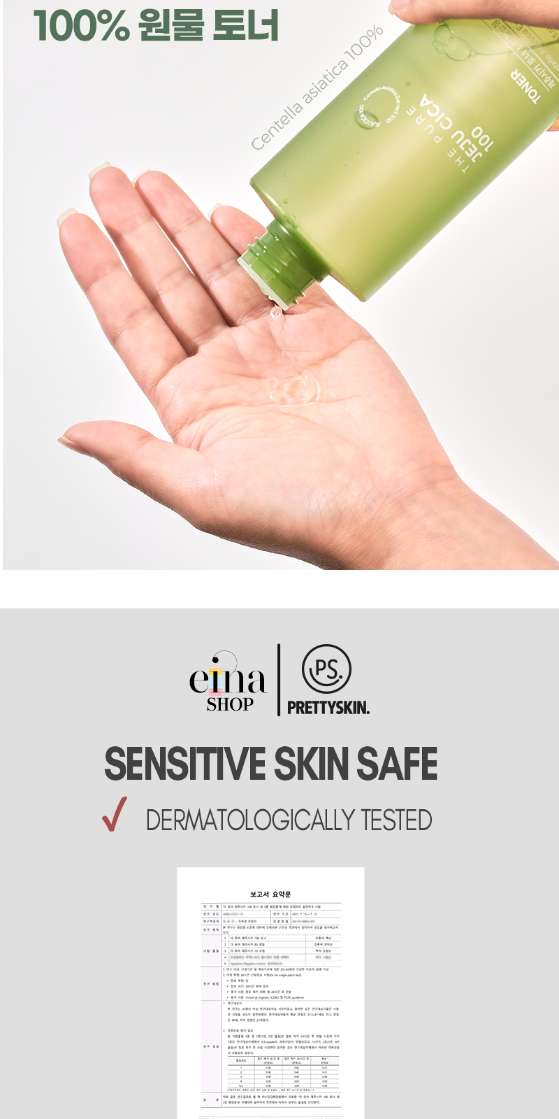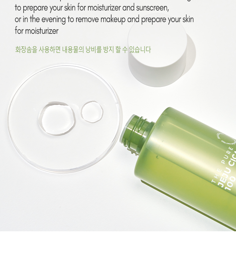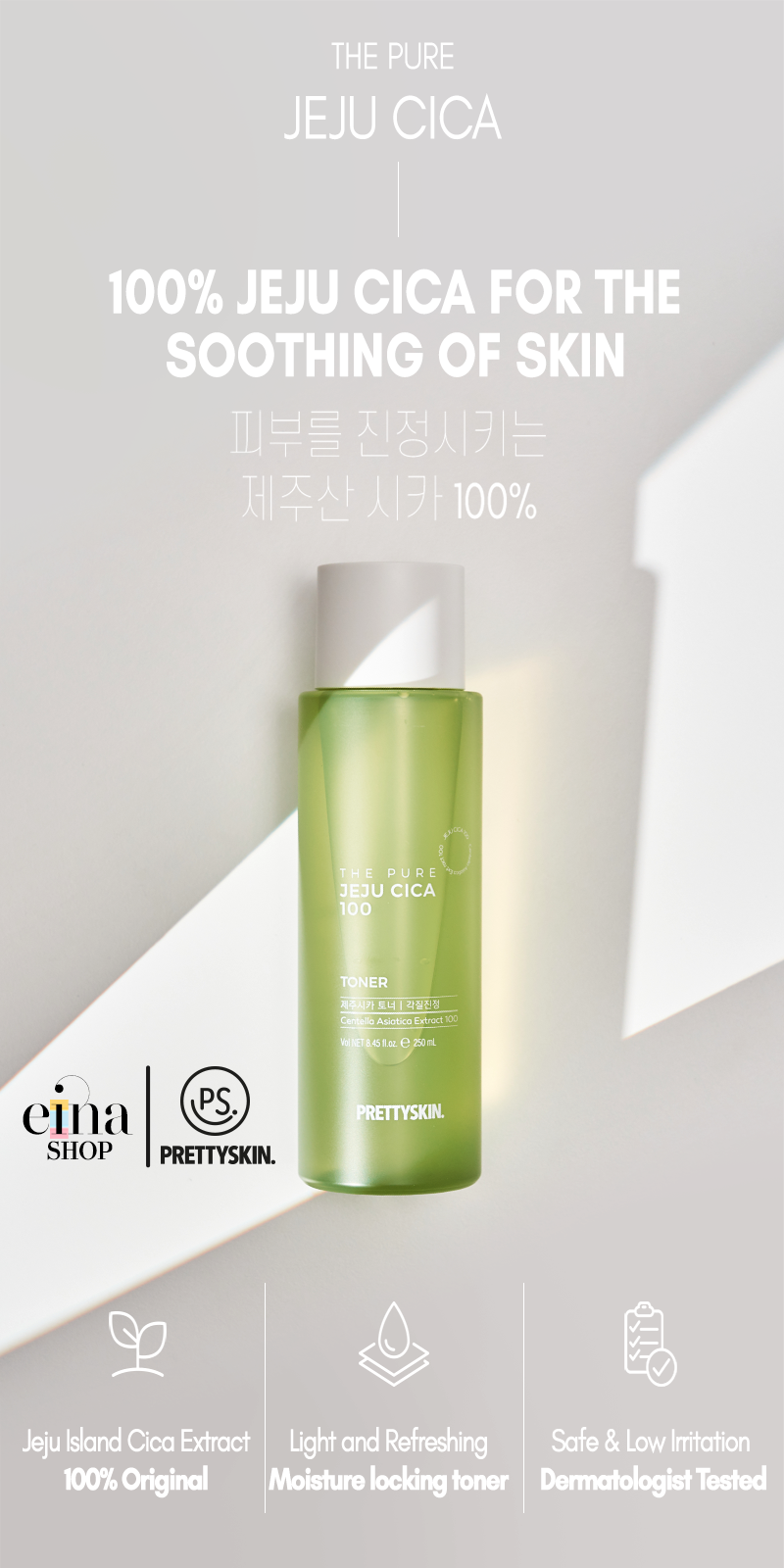 • The Pure Jeju Cica 100 Toner contains 100% natural jeju cica plant extract that is dermatologically tested and is also suitable and safe to use for sensitive skin.