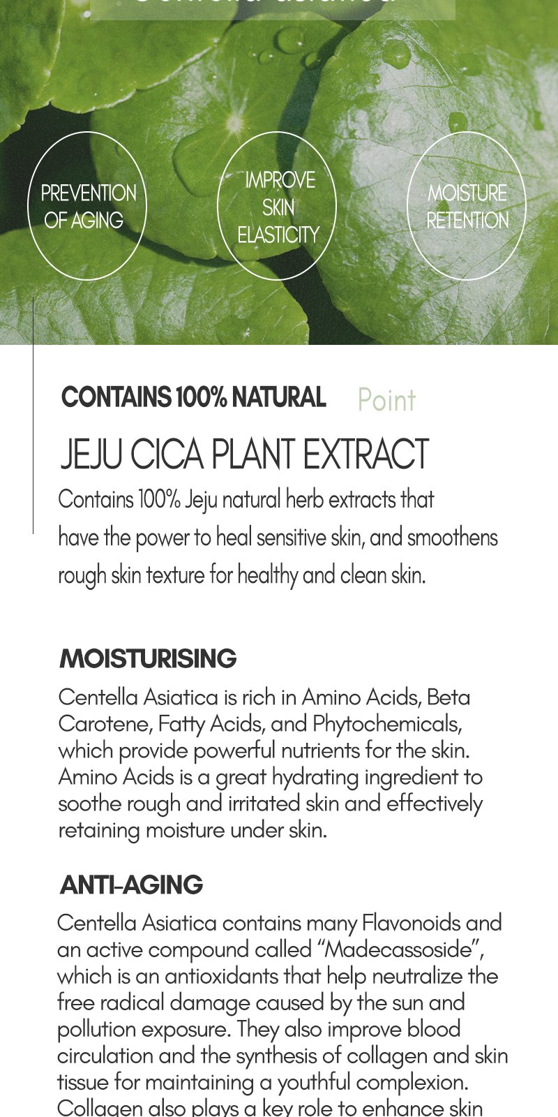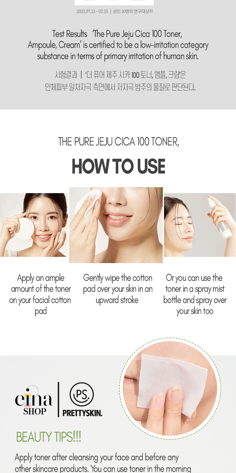 • The Pure Jeju Cica Skincare Series is dermatologically certified to be a low irritation category that can be use for even sensitive skin.